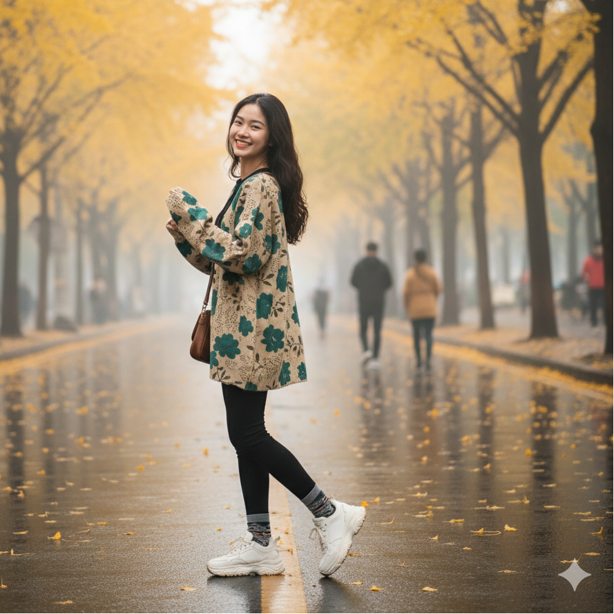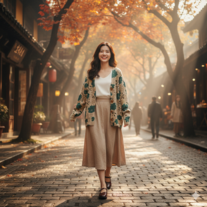 Áo len dài tay cổ tròn in những bông hoa đồng màu - A476