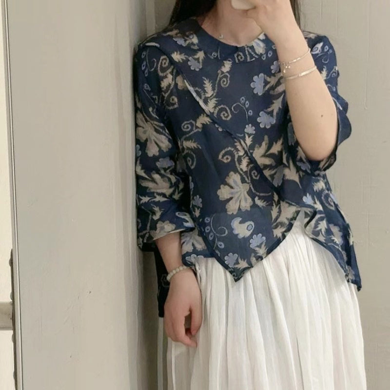 Áo sơ mi linen tay lửng hoa văn - A1019