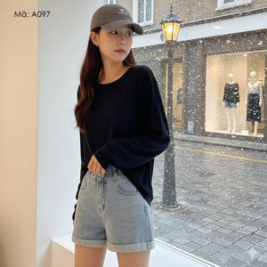 Áo T-shirt dài tay cổ tròn đơn sắc - A096