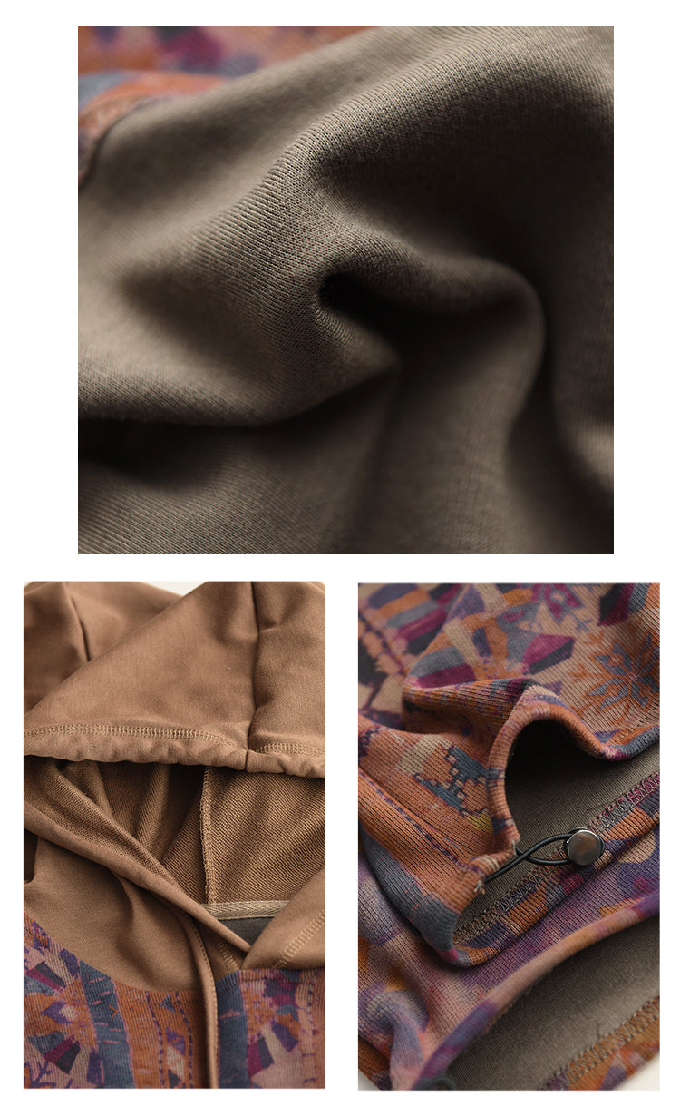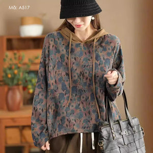 Áo hoodies dệt kim dài tay in hoa retro - A516