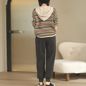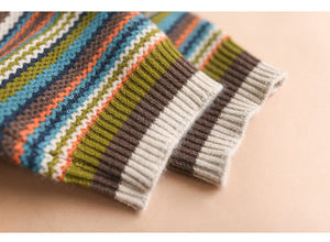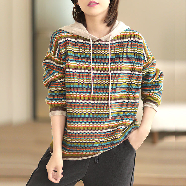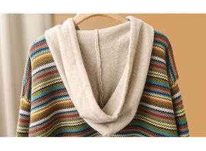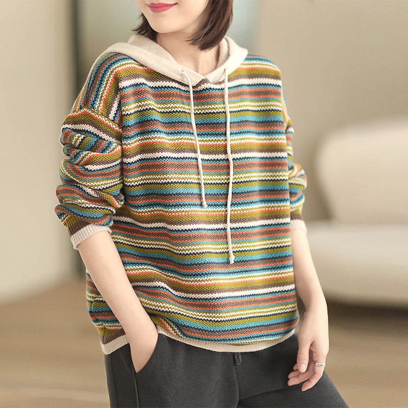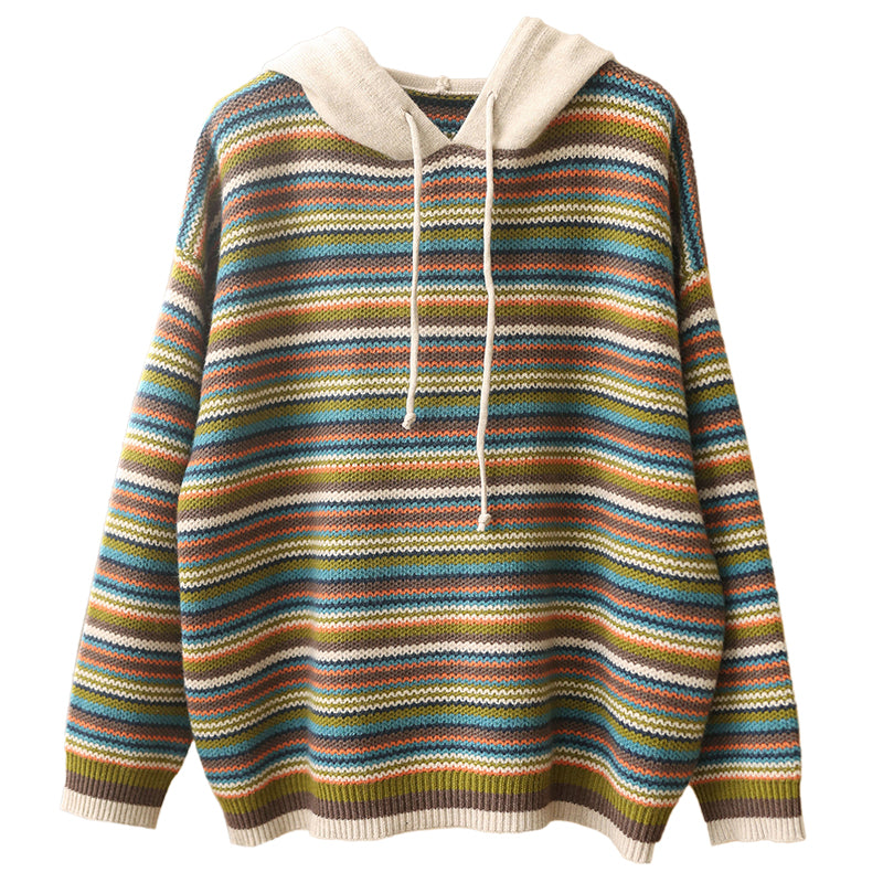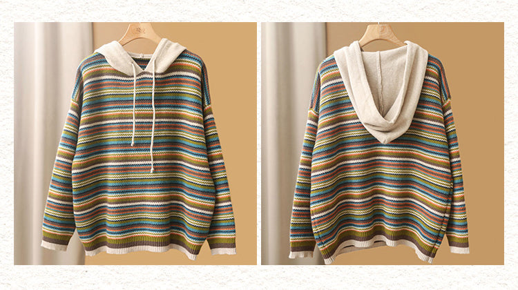 Áo hoodies len dệt kim dài tay kẻ sọc sắc màu - NU8120