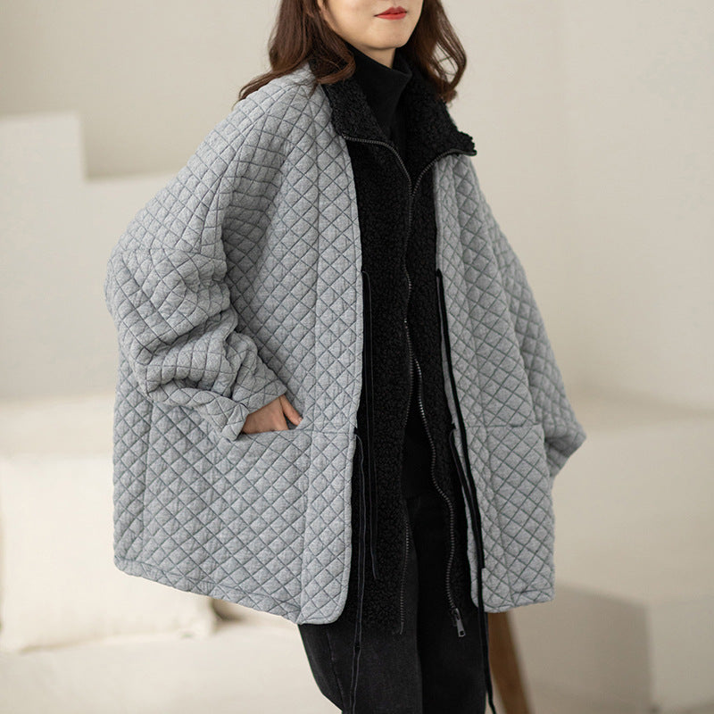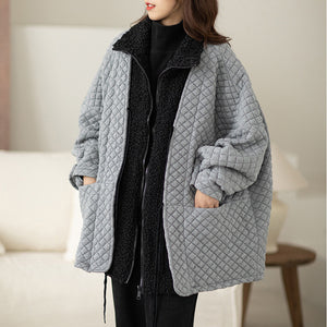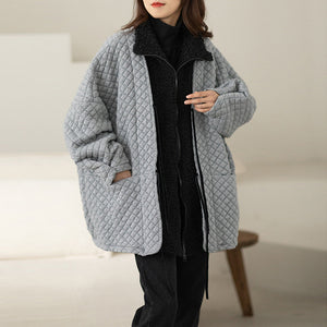 Áo khoác dài tay lót lông form rộng kiểu trần trám - NU6514