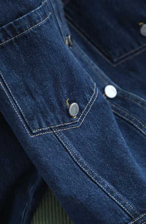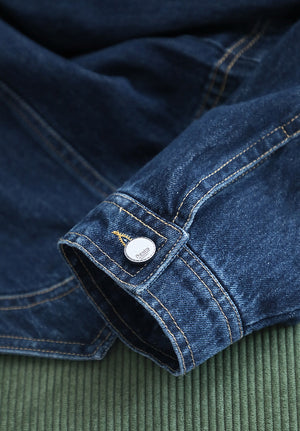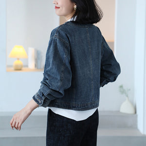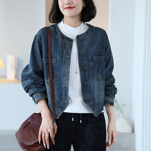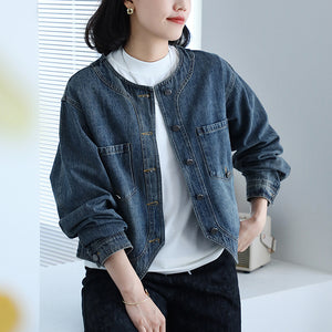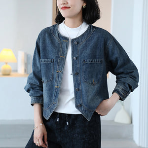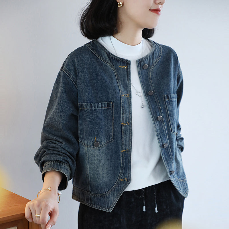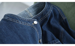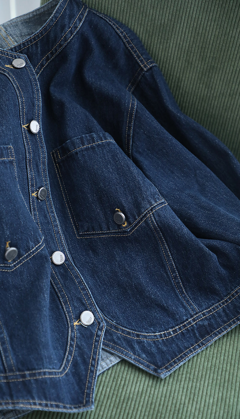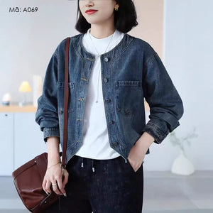 Áo khoác denim dài tay cổ tròn vạt chéo - A069