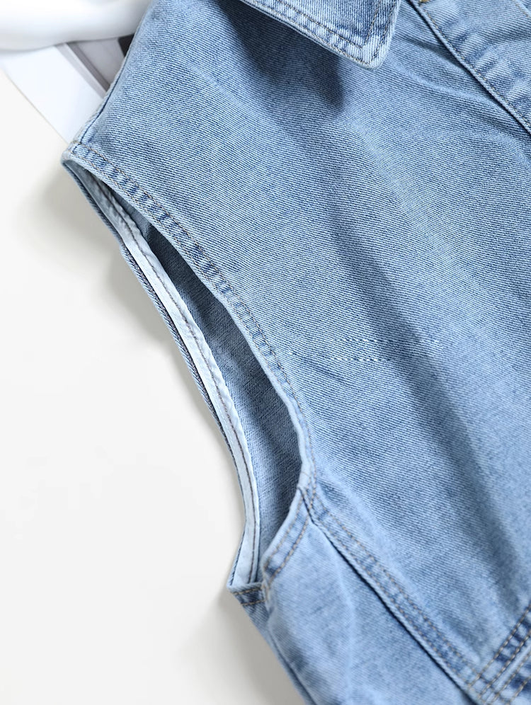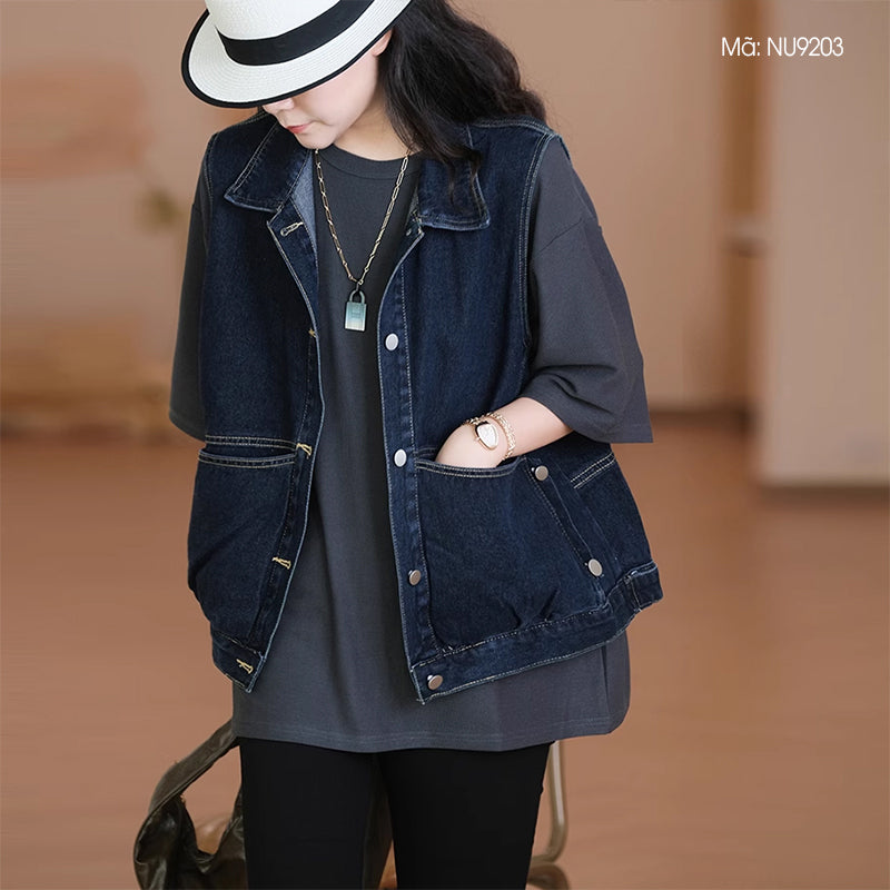 Áo khoác gile denim sát nách cổ đức hai túi - NU9203