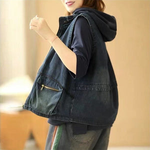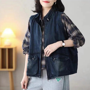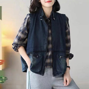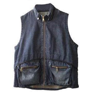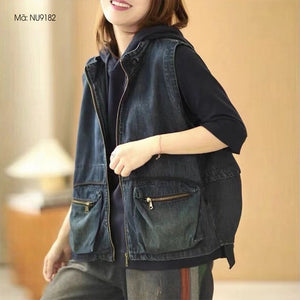 Áo khoác gile denim sát nách cổ đứng hai túi khóa kéo - NU9182
