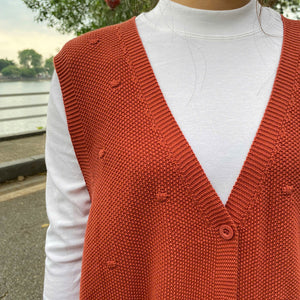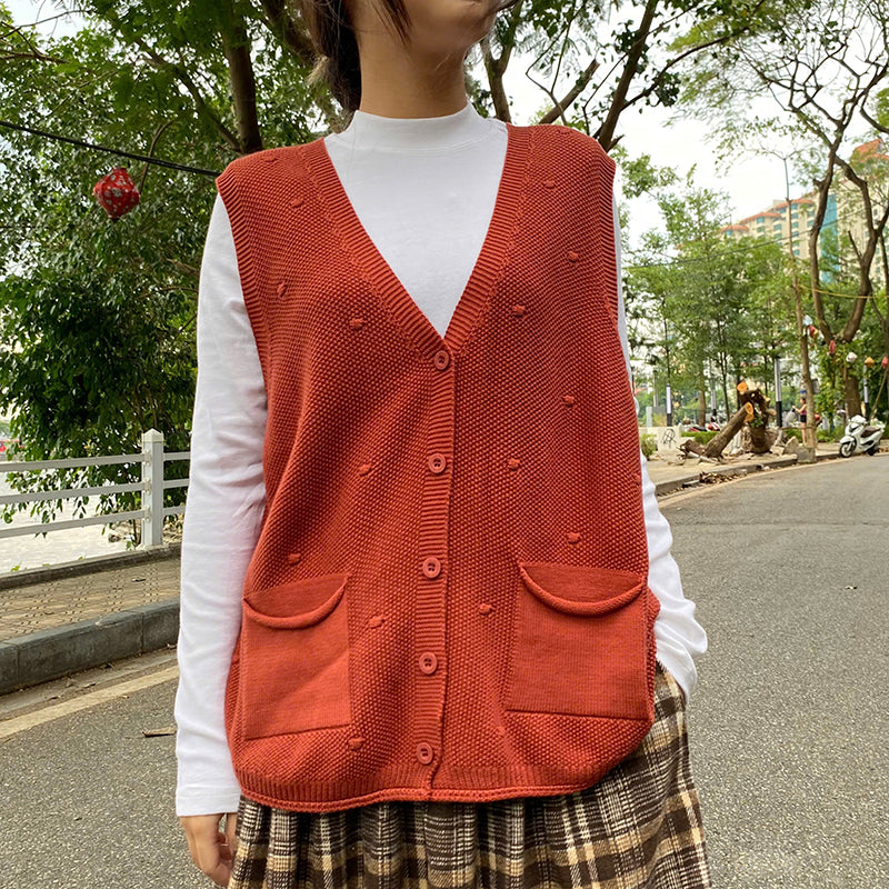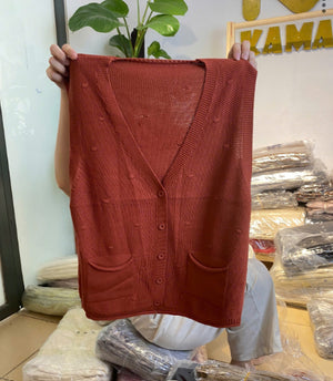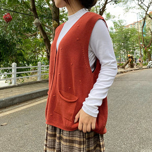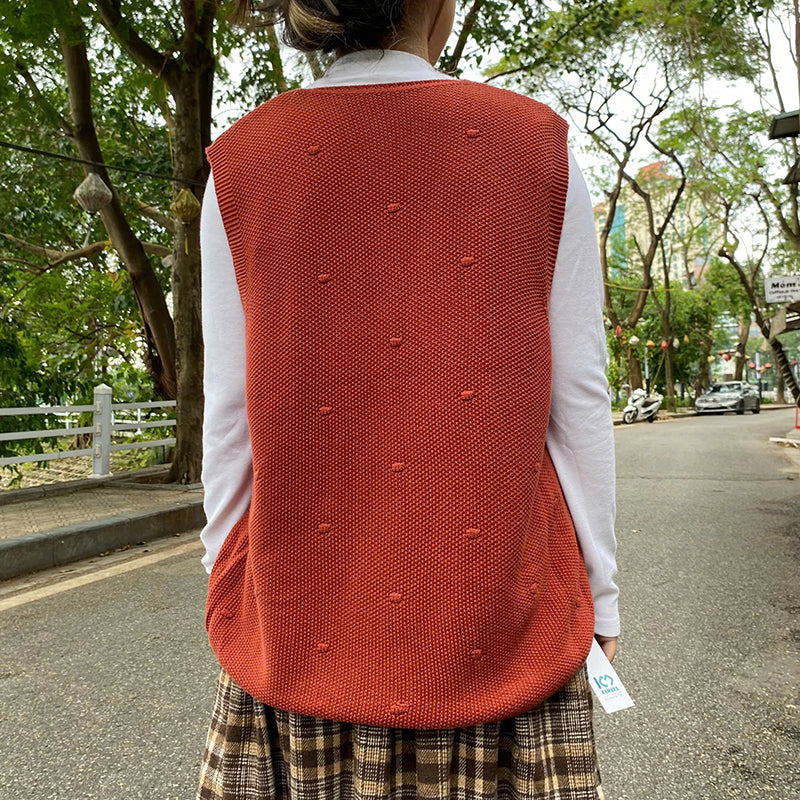 Áo khoác gile len đan chấm bi đồng màu cổ V - A194