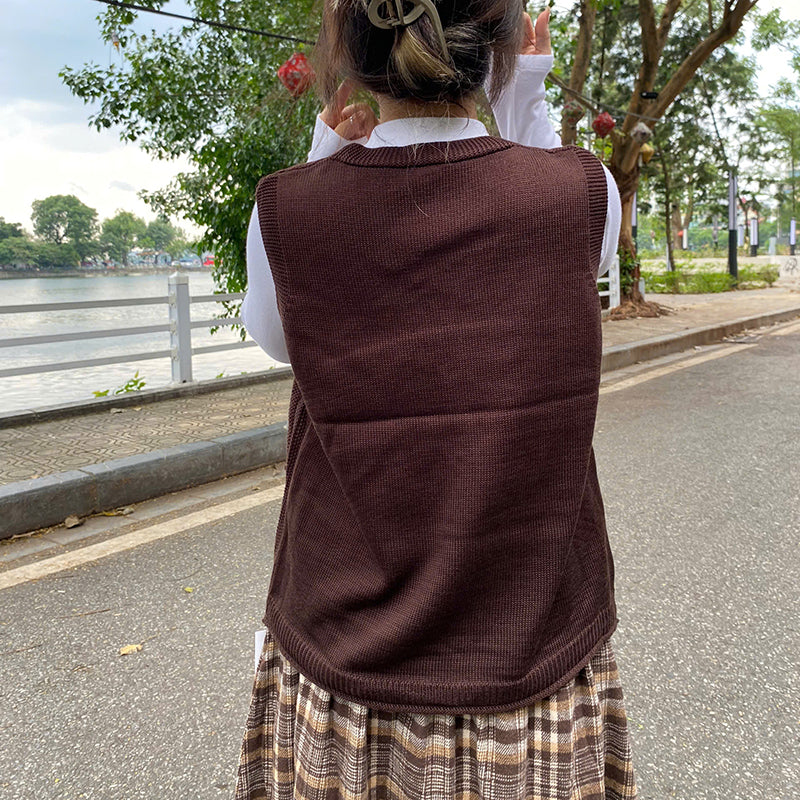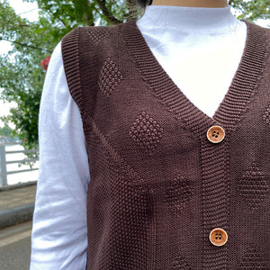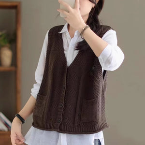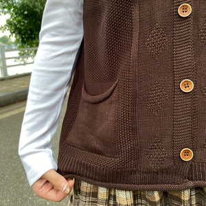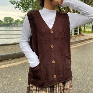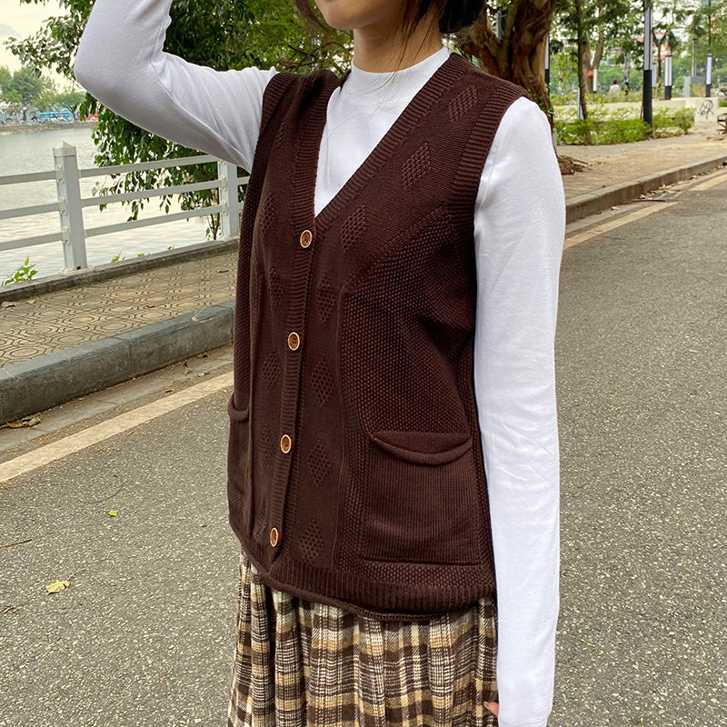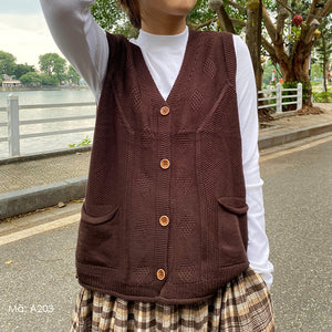Áo khoác gile len đan cổ V hai túi - A203