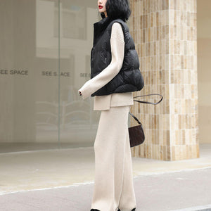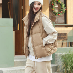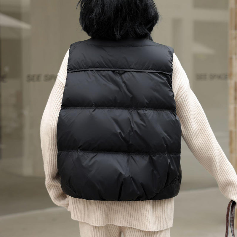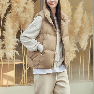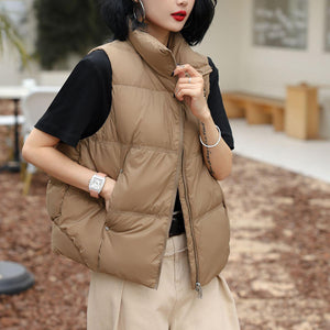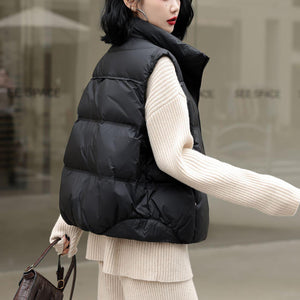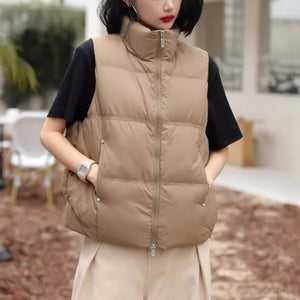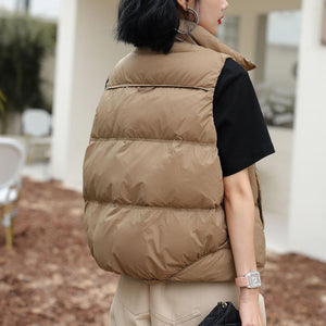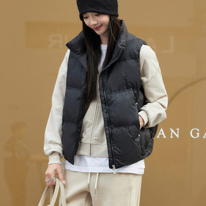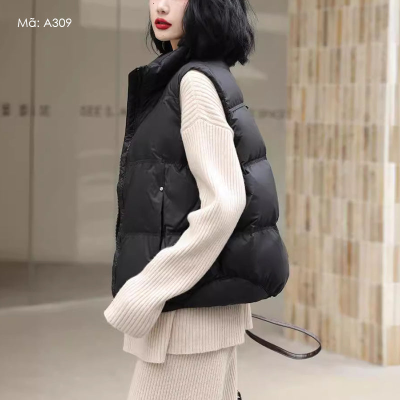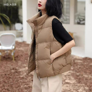 Áo khoác gile lông vũ sát nách cổ đứng khóa kéo hai túi - A308