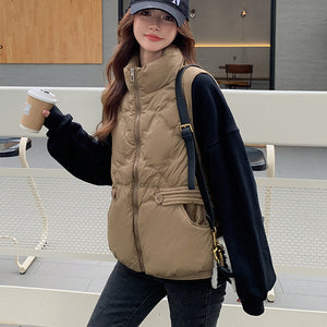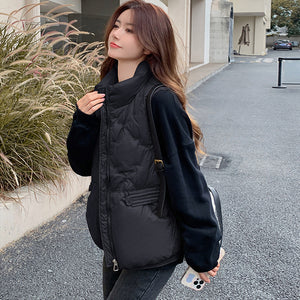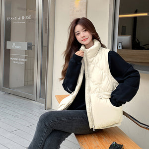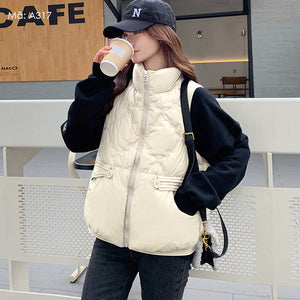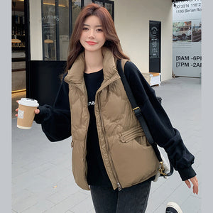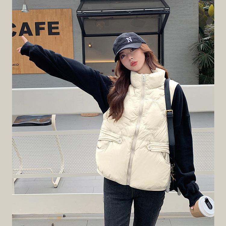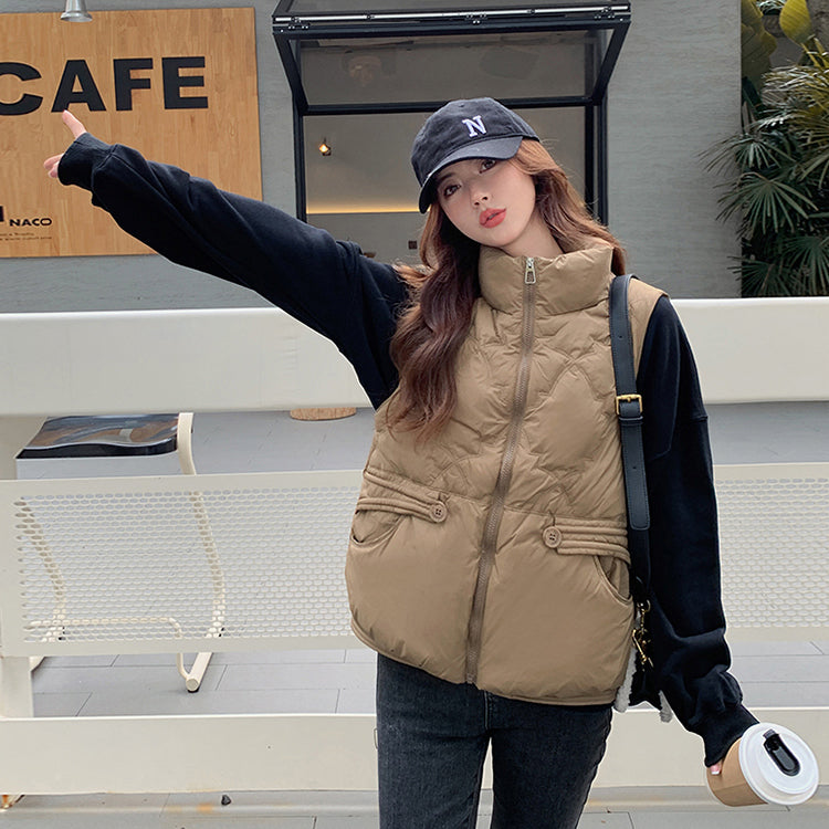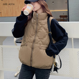 Áo khoác gile lông vũ sát nách cổ đứng túi khuy kiểu - A316