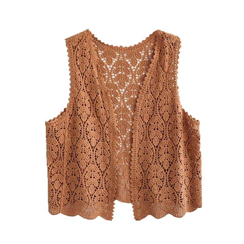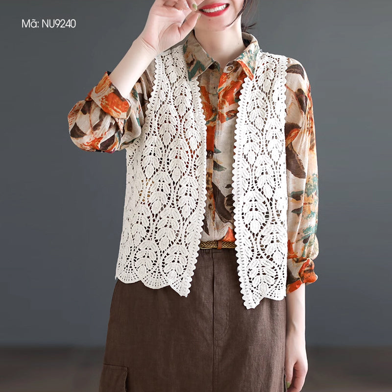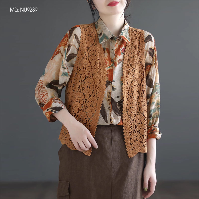 Áo khoác len cardigan sát nách cổ V đan những chiếc lá - NU9239
