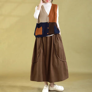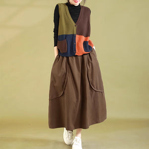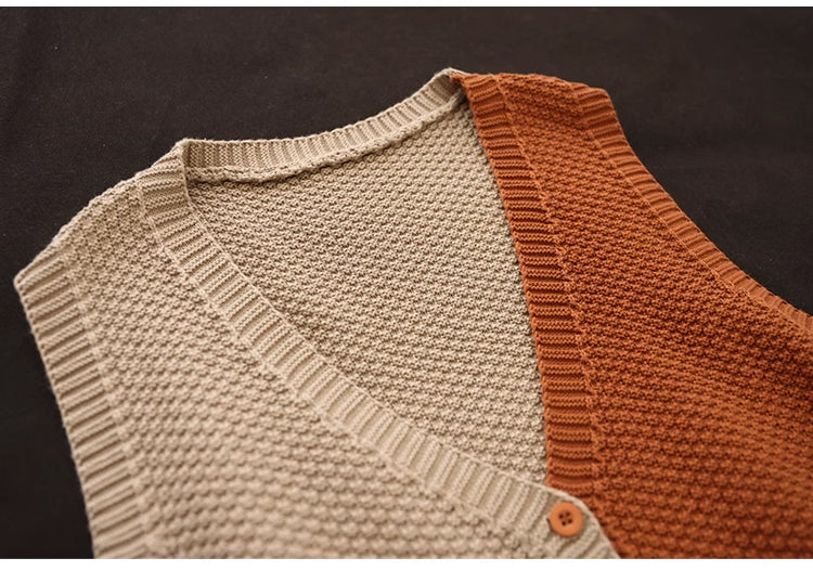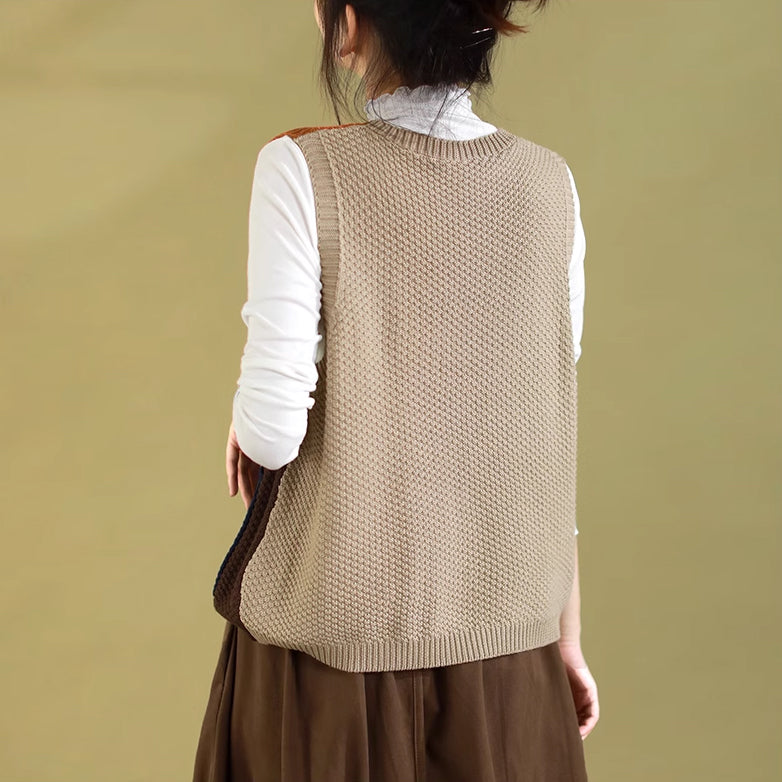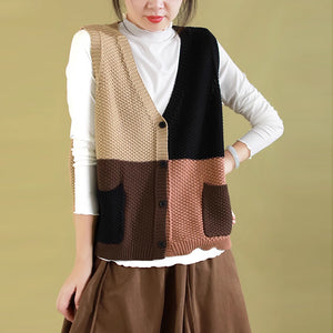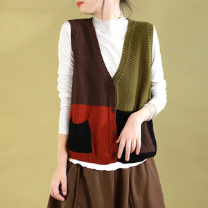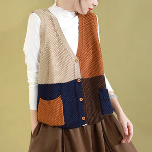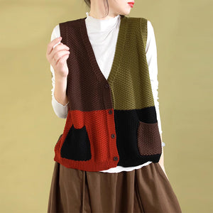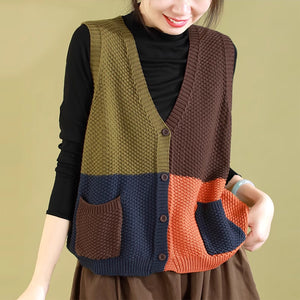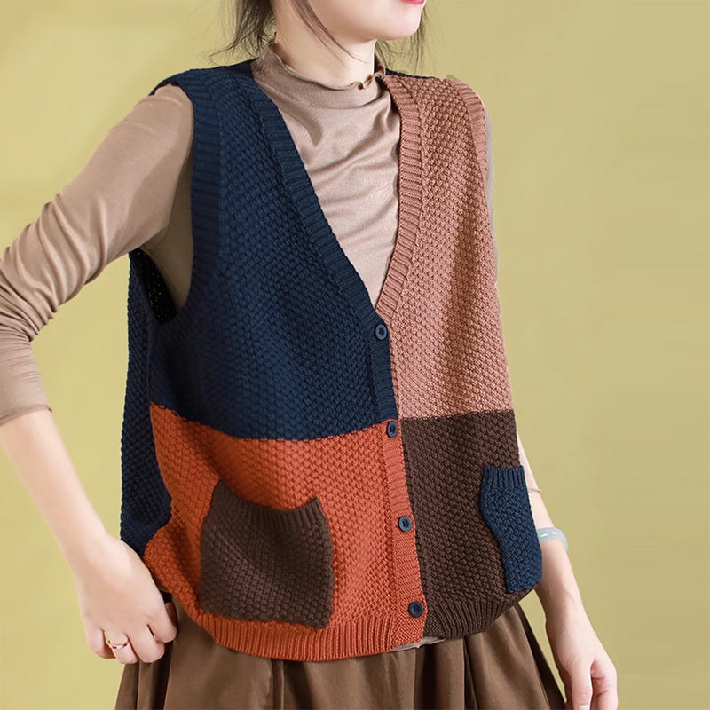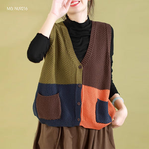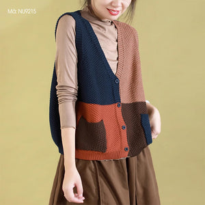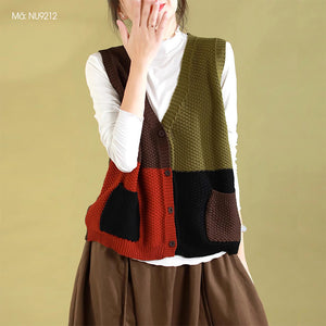 Áo khoác len gile sát nách cổ V hai túi mảng màu - NU9212