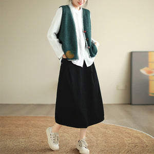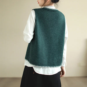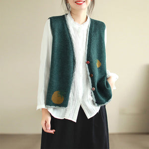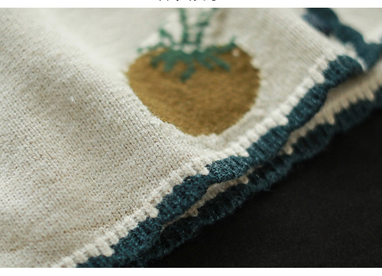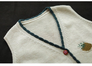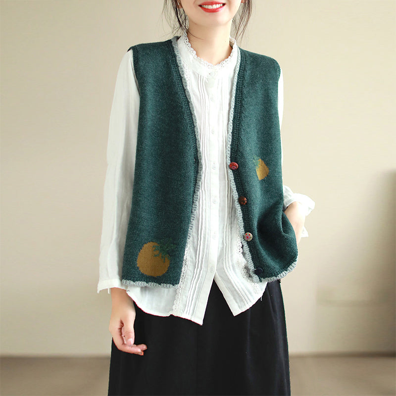 Áo khoác len gile sát nách cổ V in quả hồng - NU9209