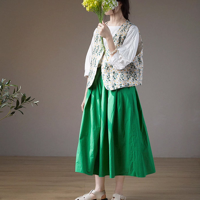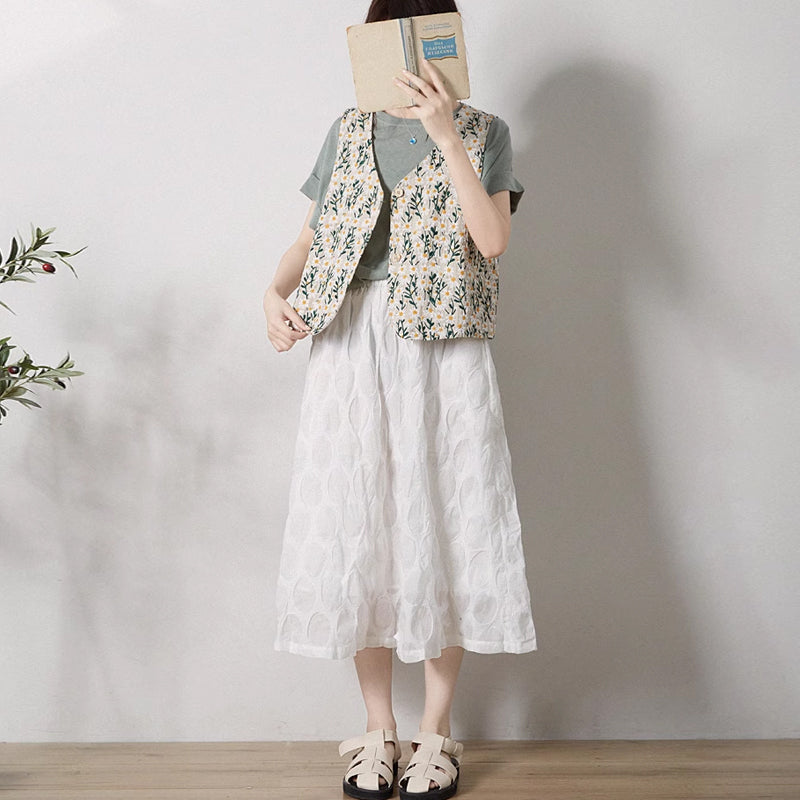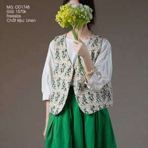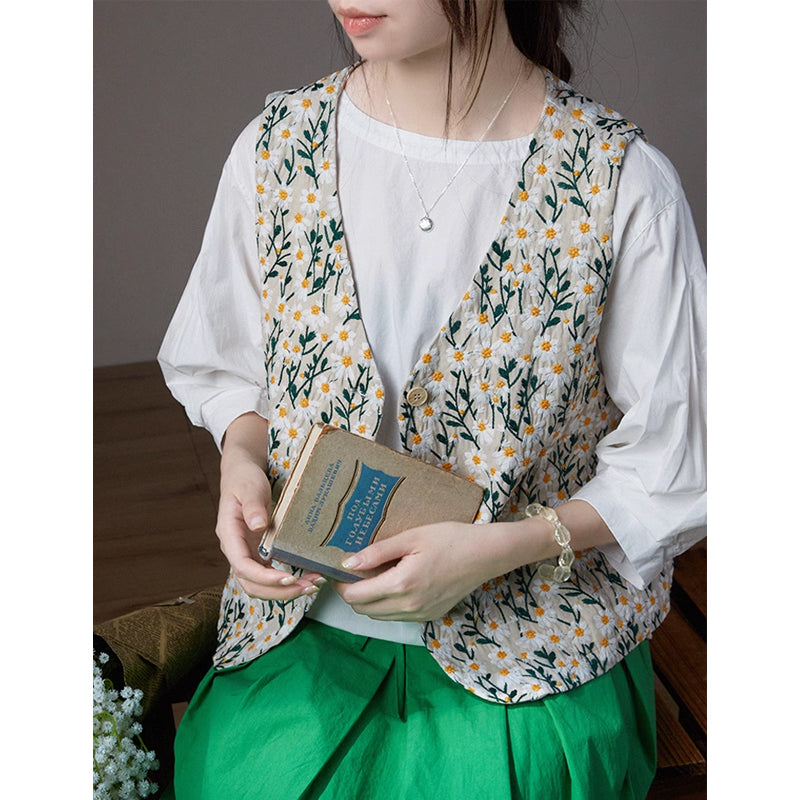 Áo khoác linen gile sát nách cổ V thêu những bông cúc họa mi - OD1748