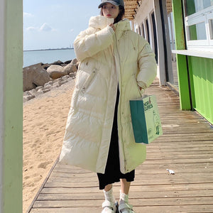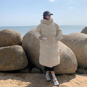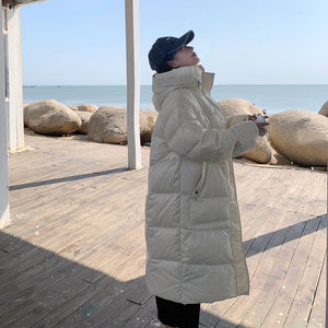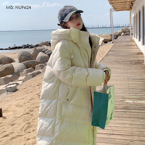 Áo khoác lông vũ dài tay cổ đứng có mũ chùm form dài - NU9624