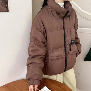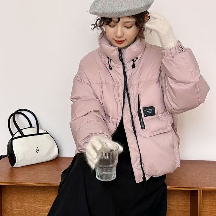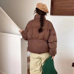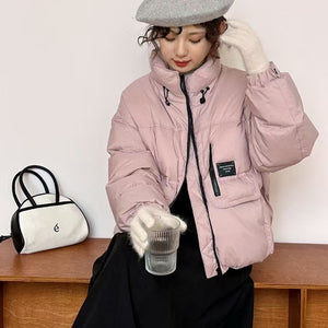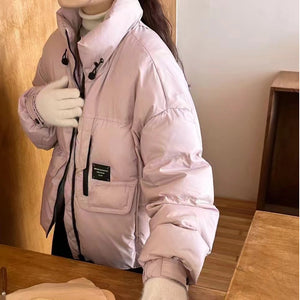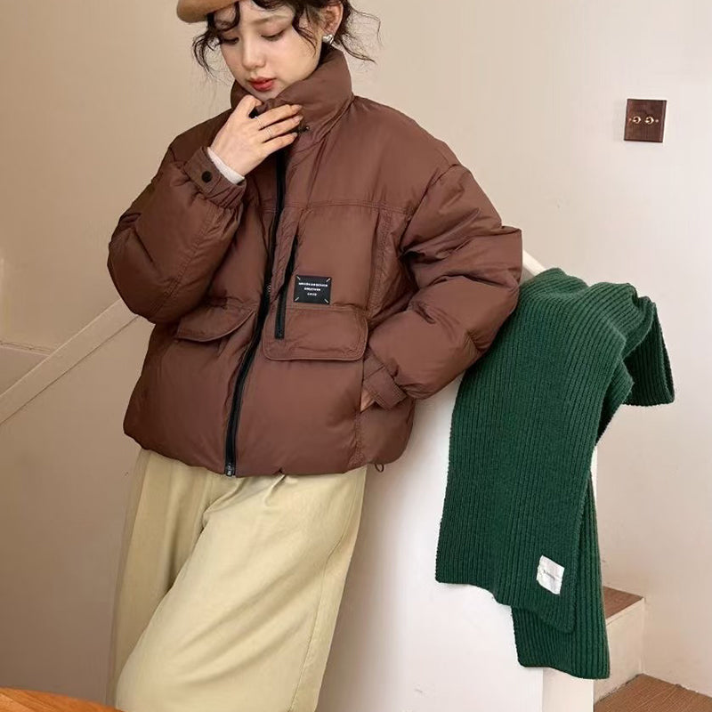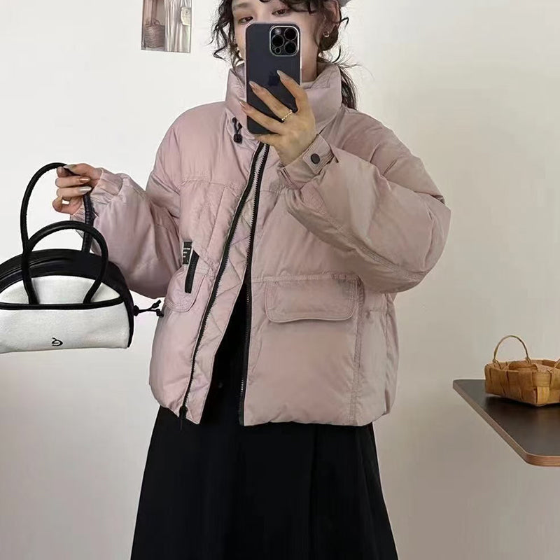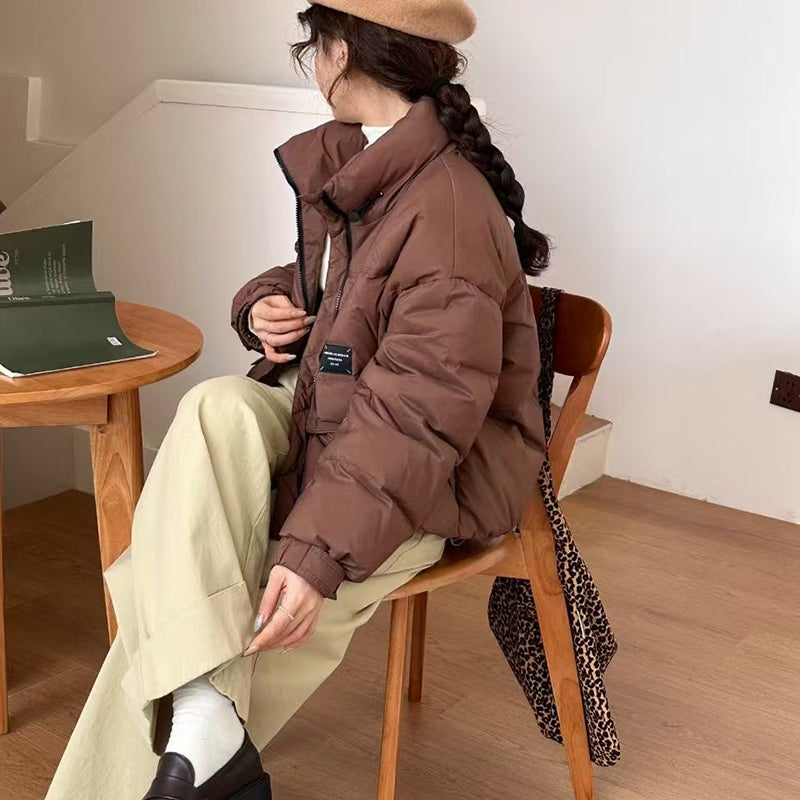 Áo khoác lông vũ dài tay cổ đứng tay bo khuy bấm - A585