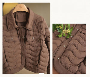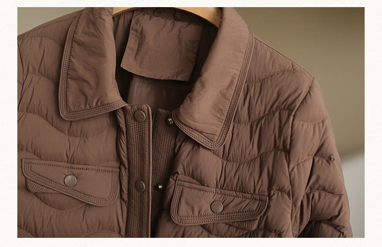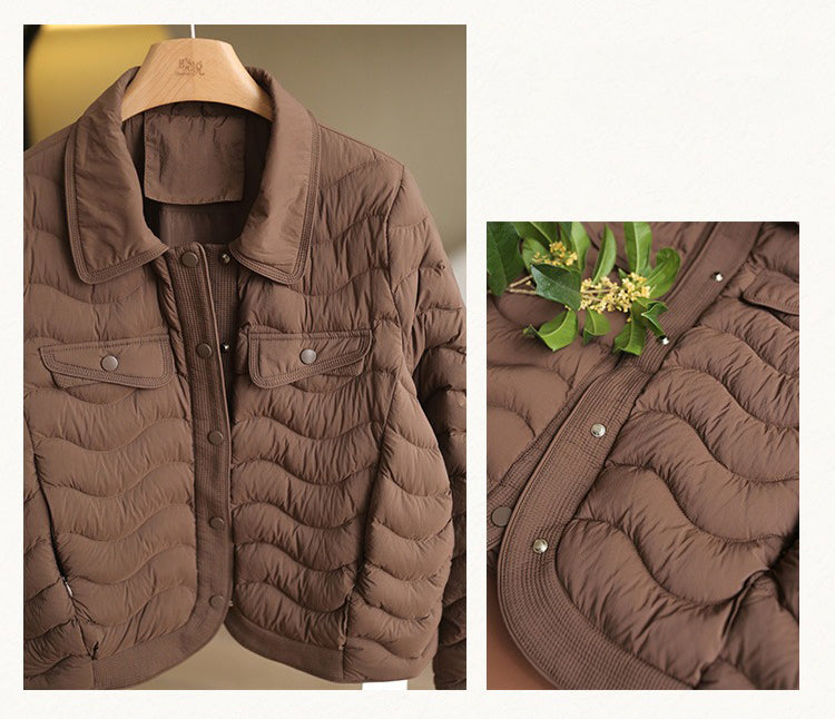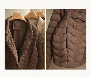 Áo khoác lông vũ dài tay trần sóng vạt bo tròn - NU9386