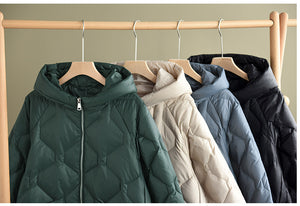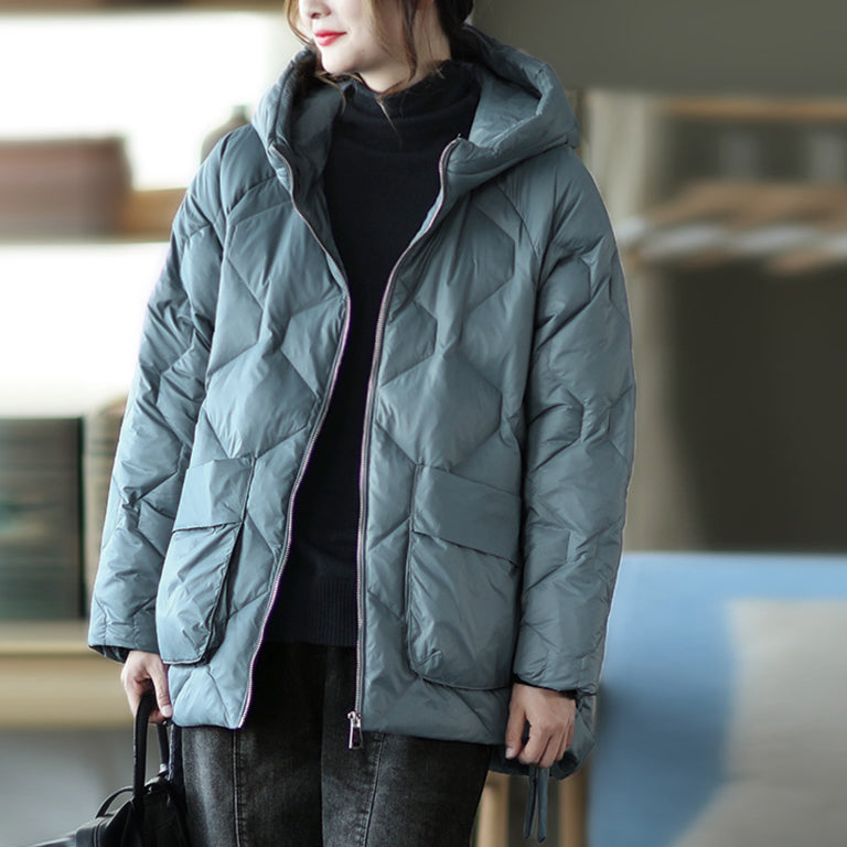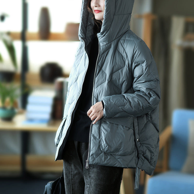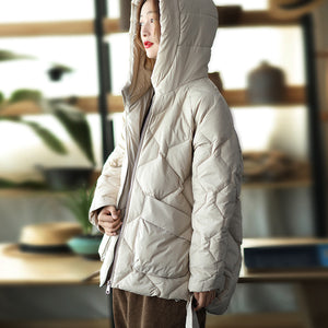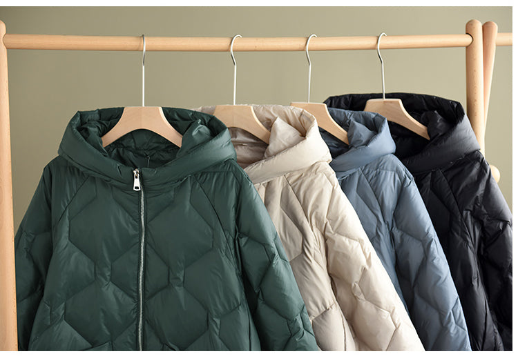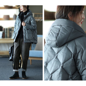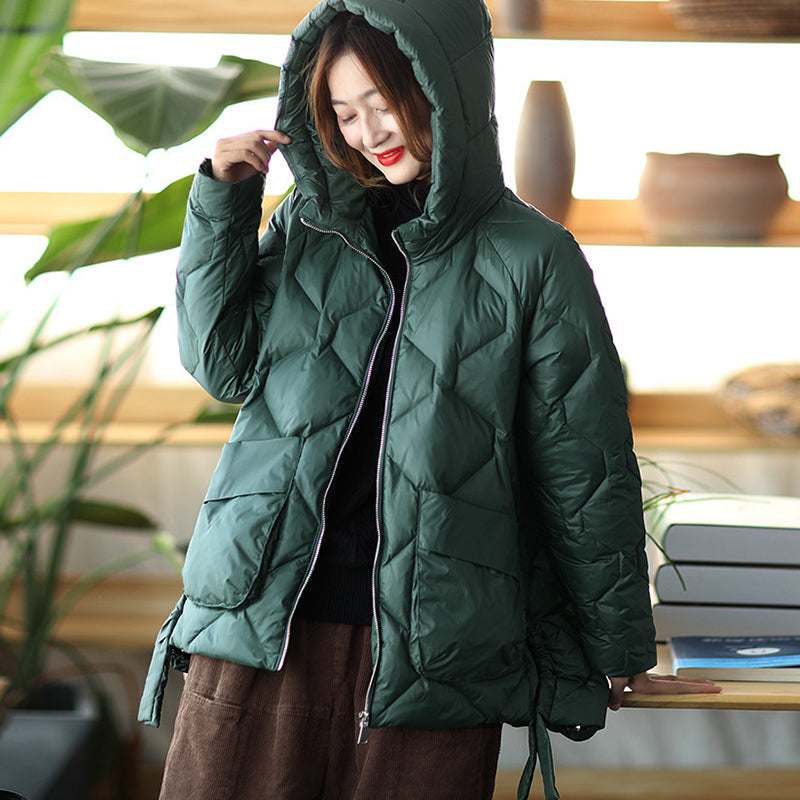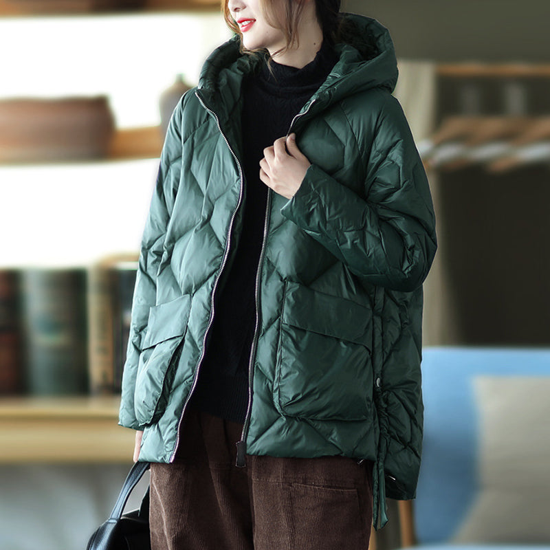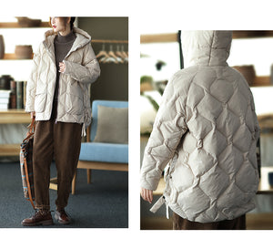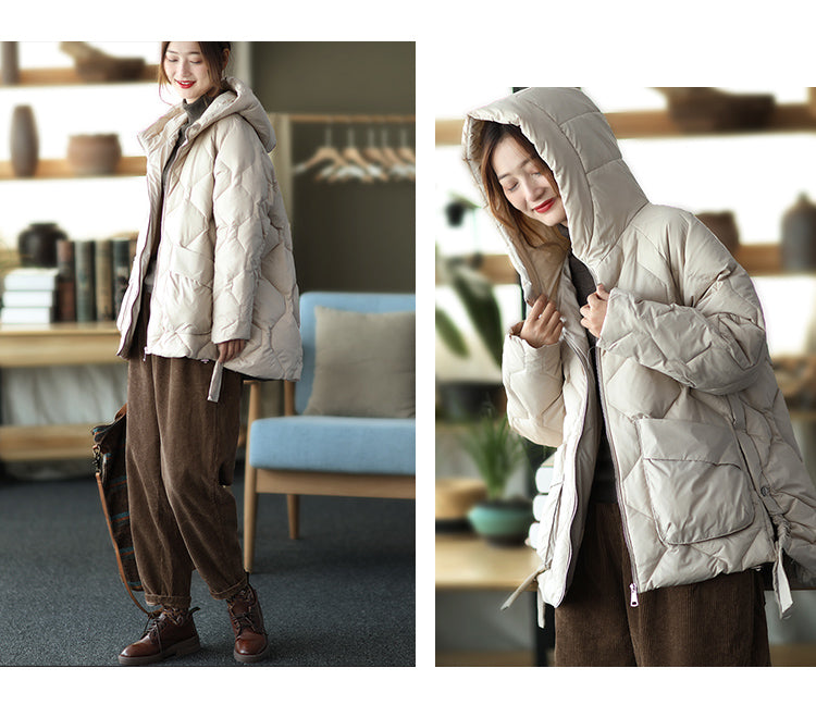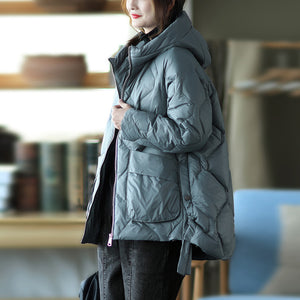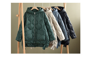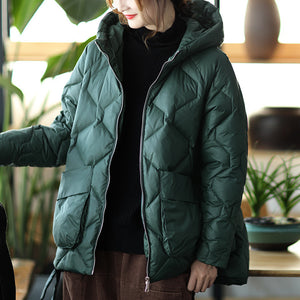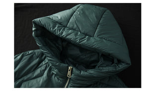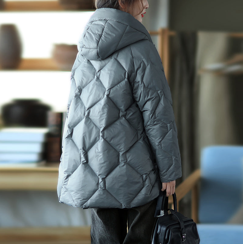 Áo khoác lông vũ form dài có mũ lệch tà - NU6326