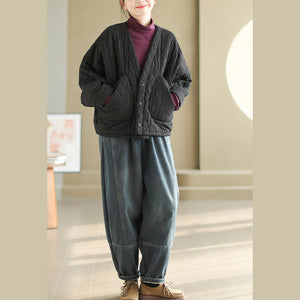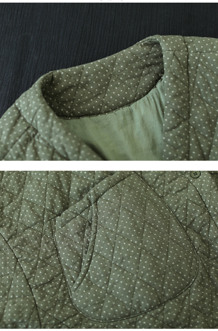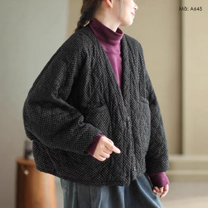 Áo khoác retro chần bông dài tay cổ V chấm bi túi đôi - A645