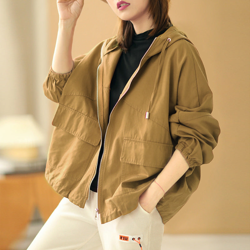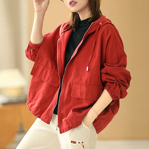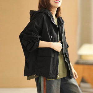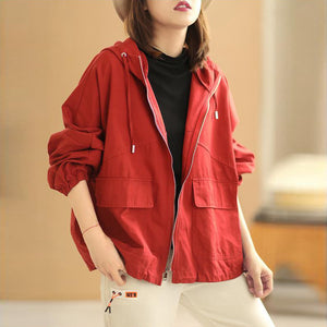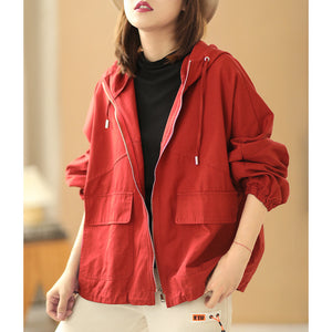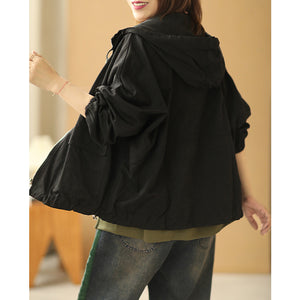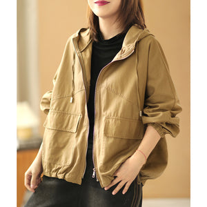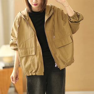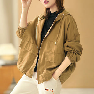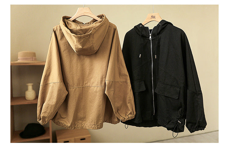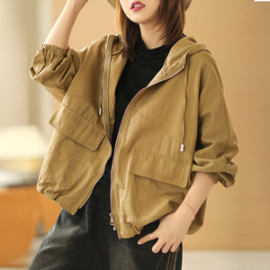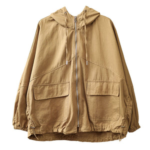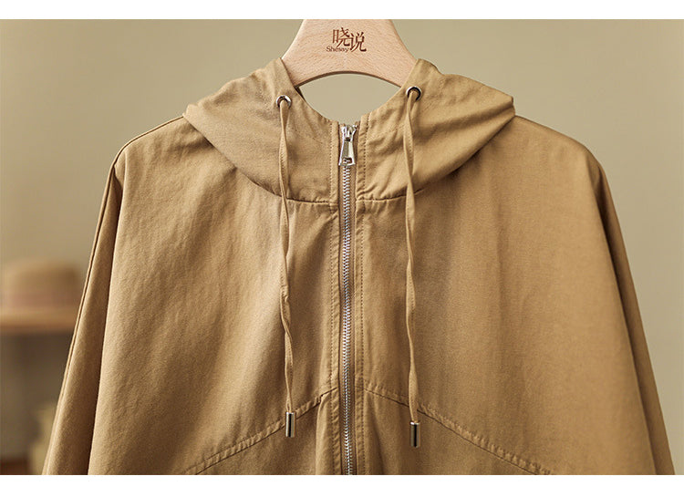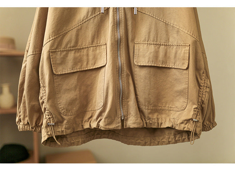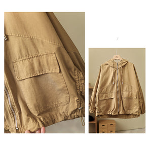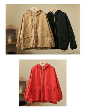 Áo khoác retro có mũ dài tay form rộng hai túi vuông - NU6387