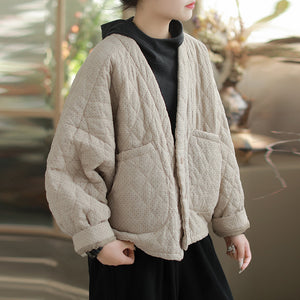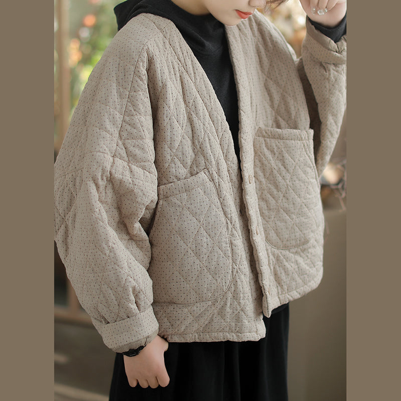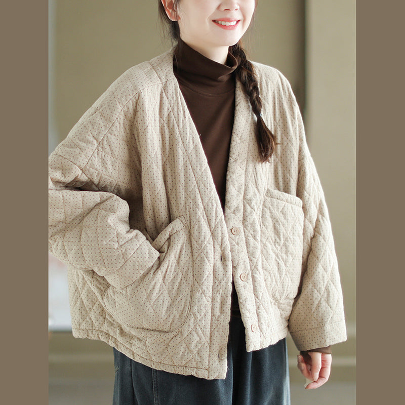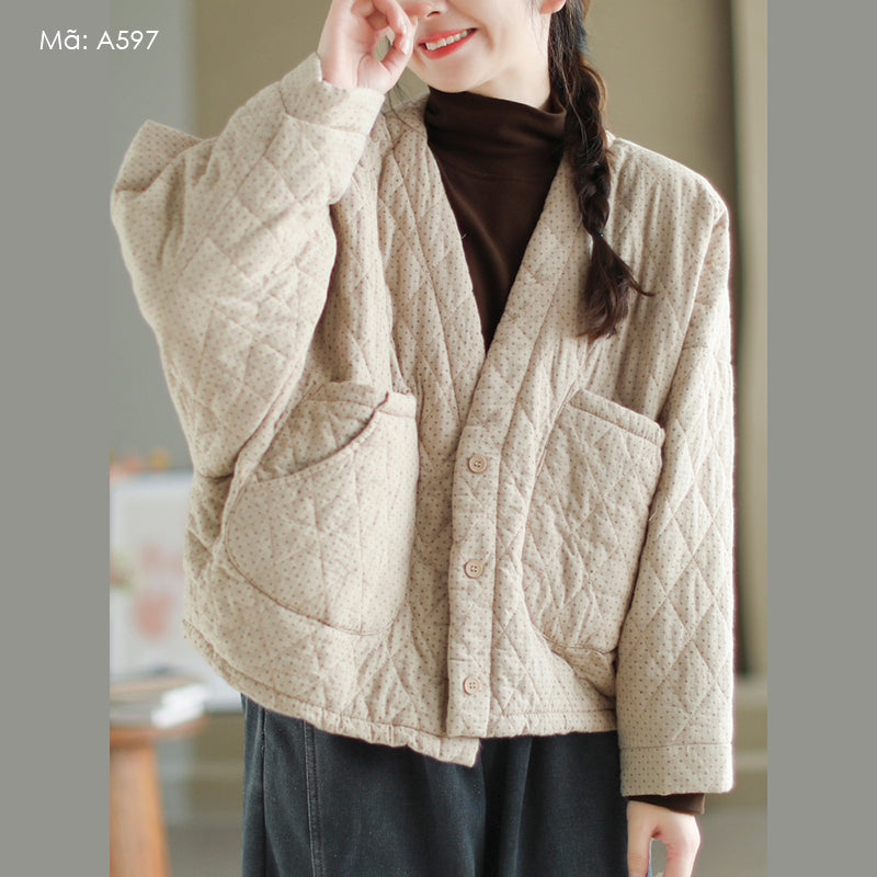 Áo khoác retro trần bông dài tay cổ V chấm bi - A597