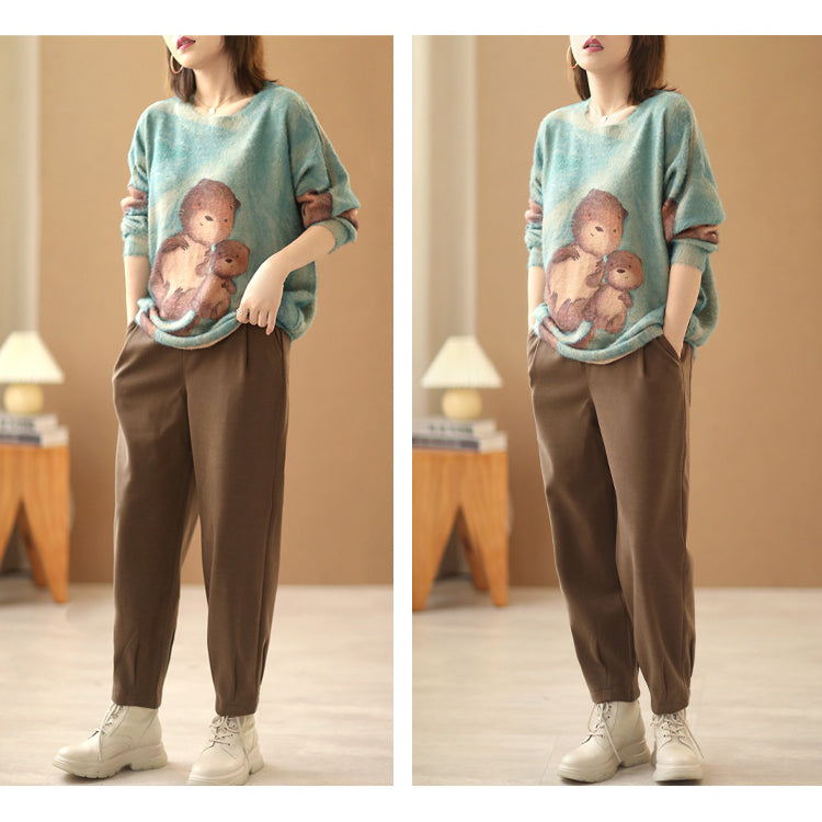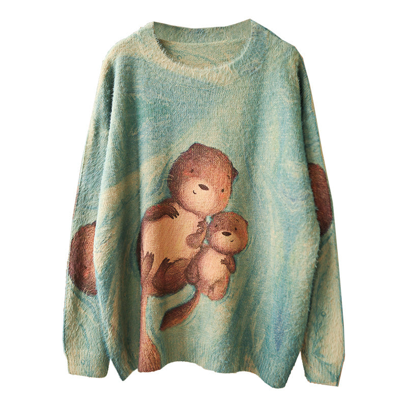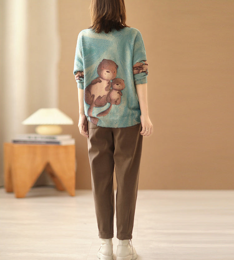 Áo len cashmere dài tay vẽ hoạt hình - NU6169