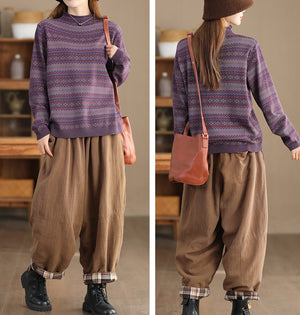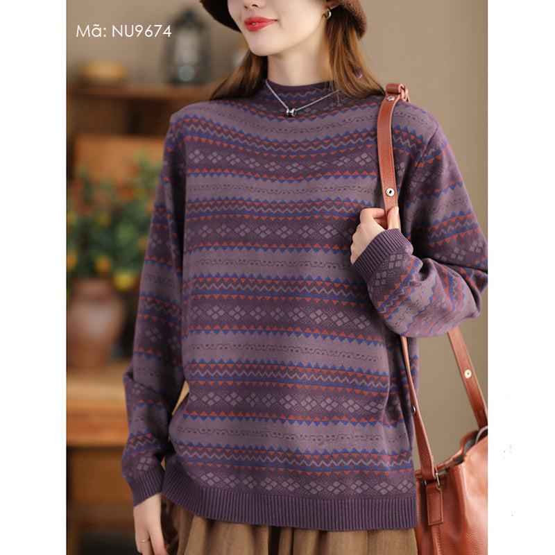 Áo len dài tay cao cổ in hoa văn cân đối - NU9674