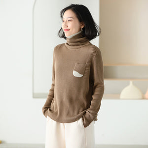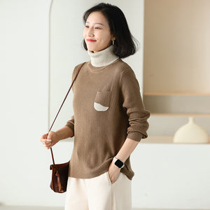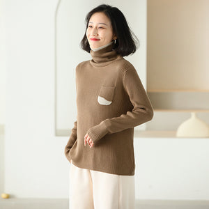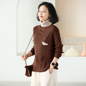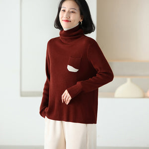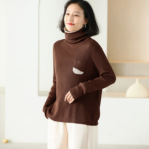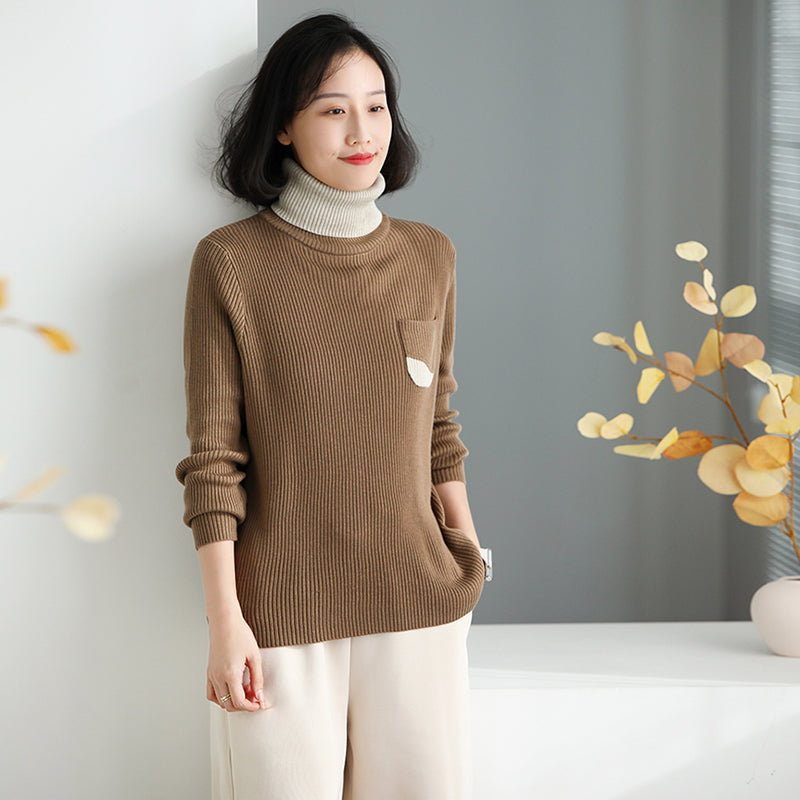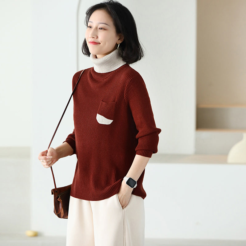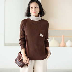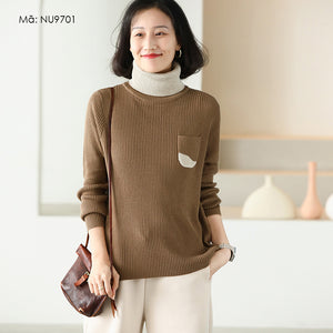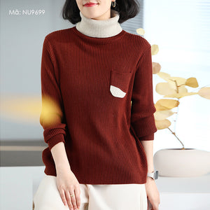 Áo len dài tay cổ lọ túi nhỏ phối màu - NU9699