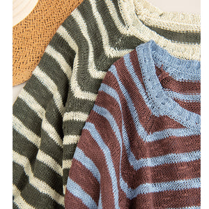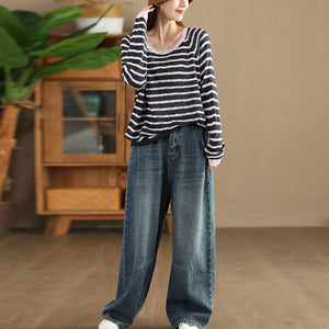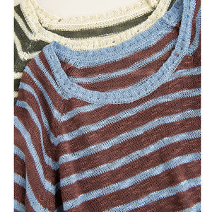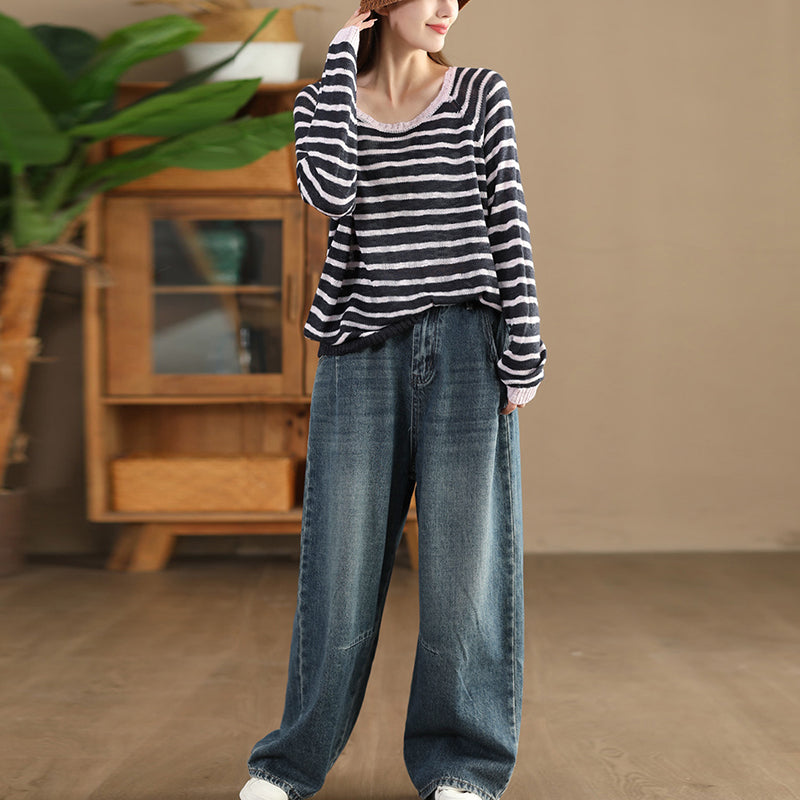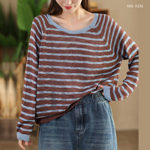 Áo len dài tay cổ tròn kẻ sọc form rộng - A235