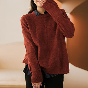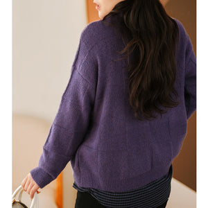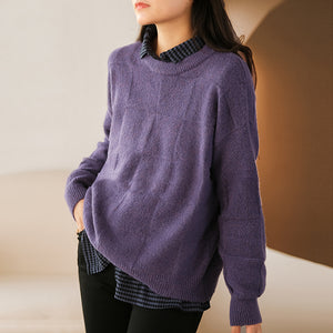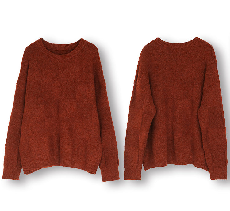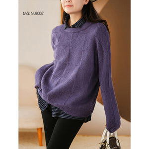 Áo len dài tay cổ tròn kiểu đan caro - NU8037