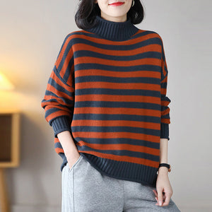 Áo len đan dài tay cổ lọ kẻ sọc ngang - NU8126