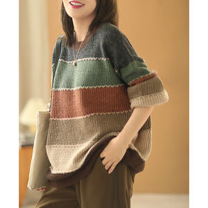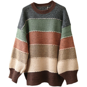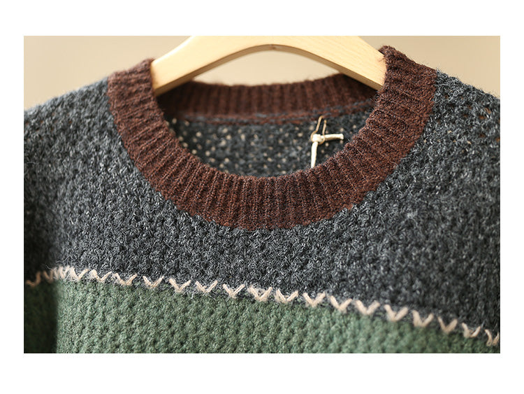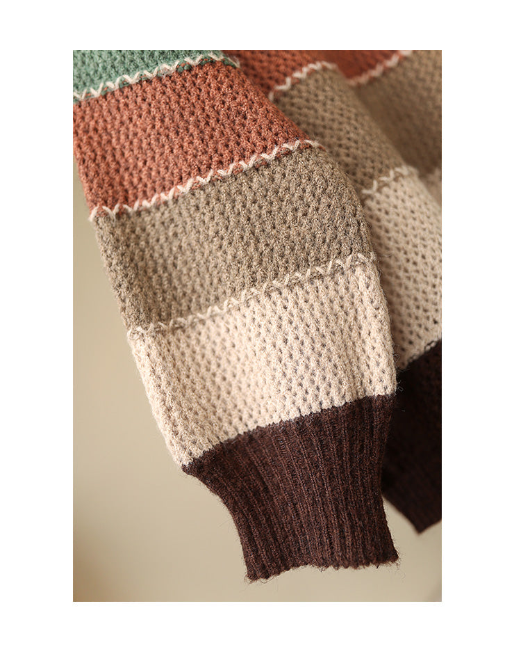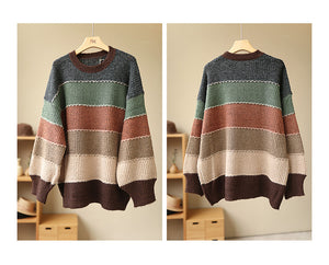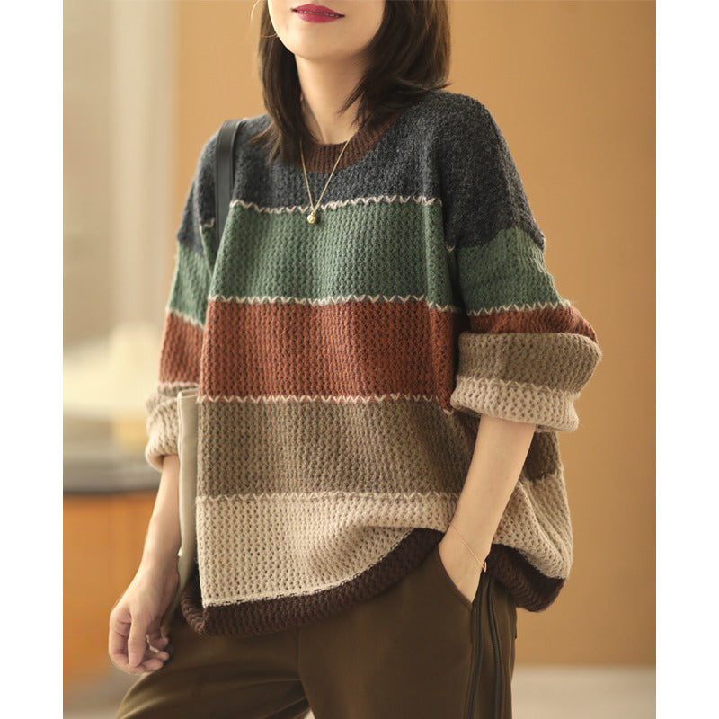 Áo len đan dài tay cổ tròn kẻ sọc màu - NU6136