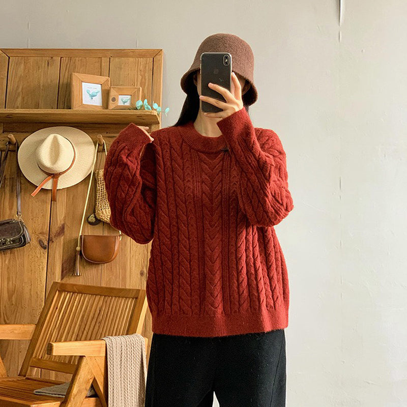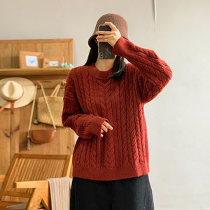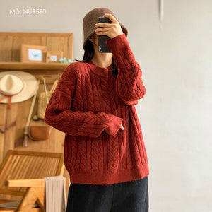 Áo len đan dài tay cổ tròn kiểu bện thừng form rộng - NU9590