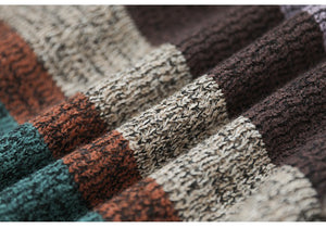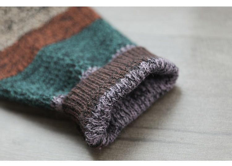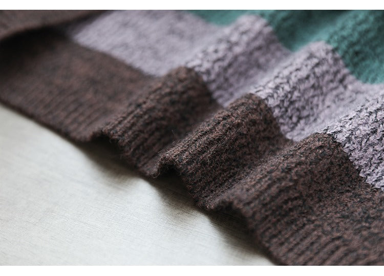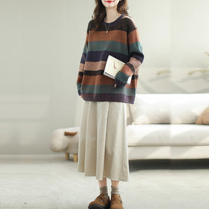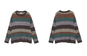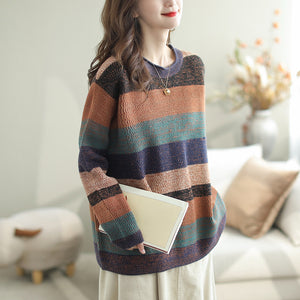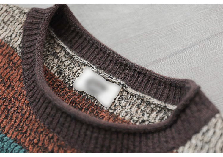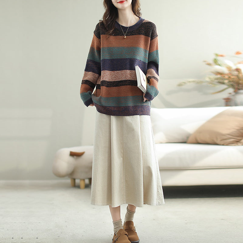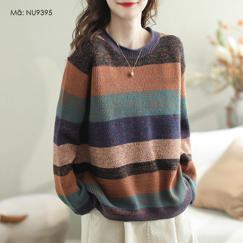 Áo len đan móc dài tay cổ tròn kẻ sọc màu sắc - NU9395