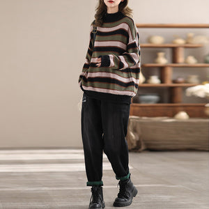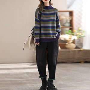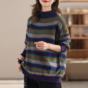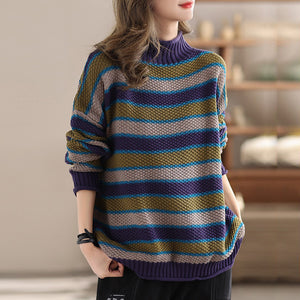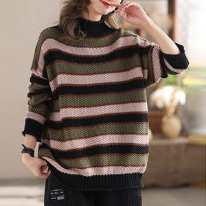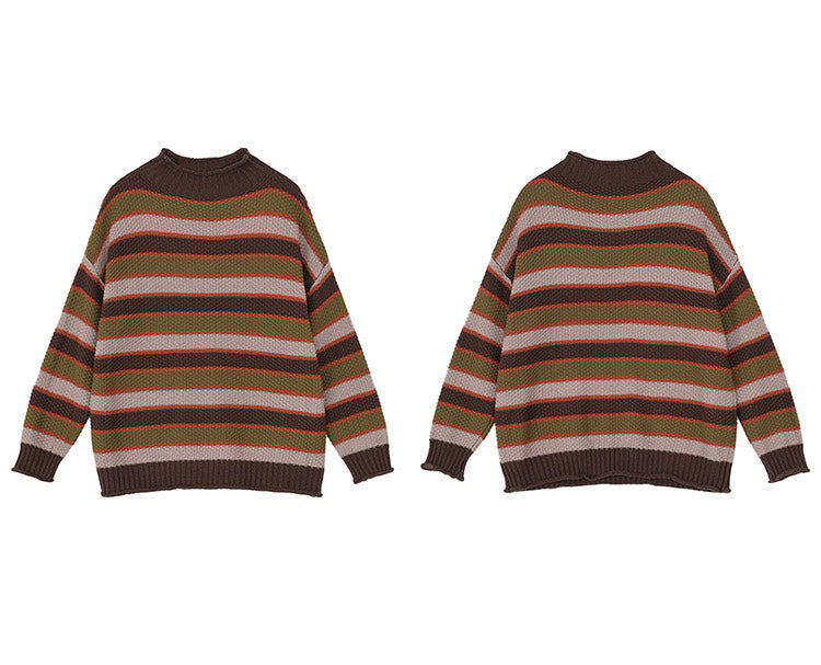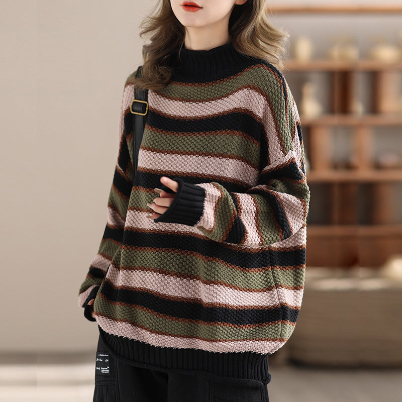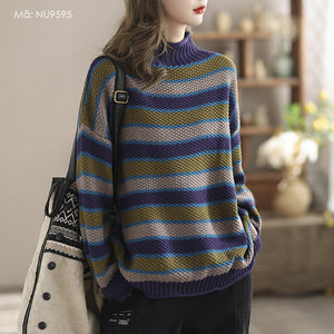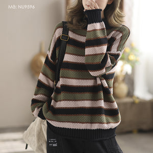 Áo len đan vảy cá kẻ sọc dài tay cổ lọ - NU9595