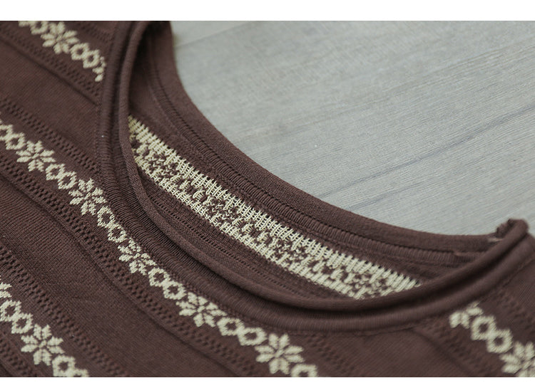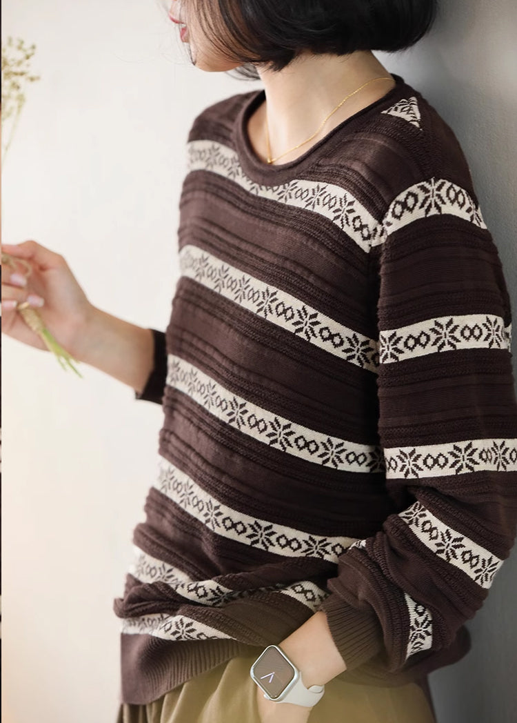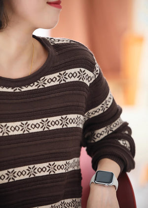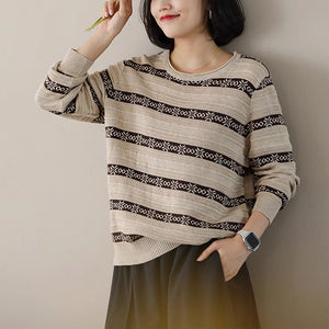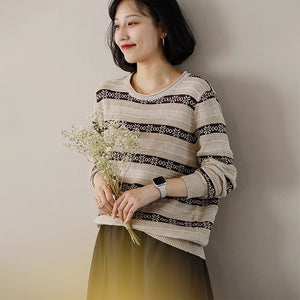 Áo len dệt kim dài tay cổ tròn kẻ sọc - NU9128