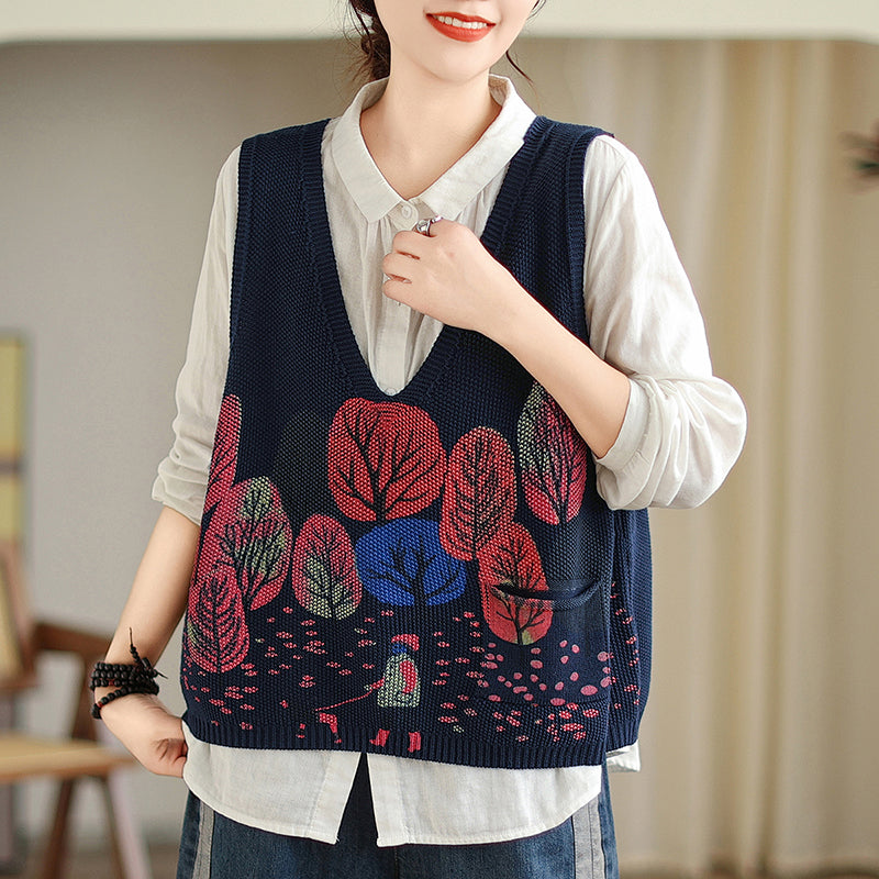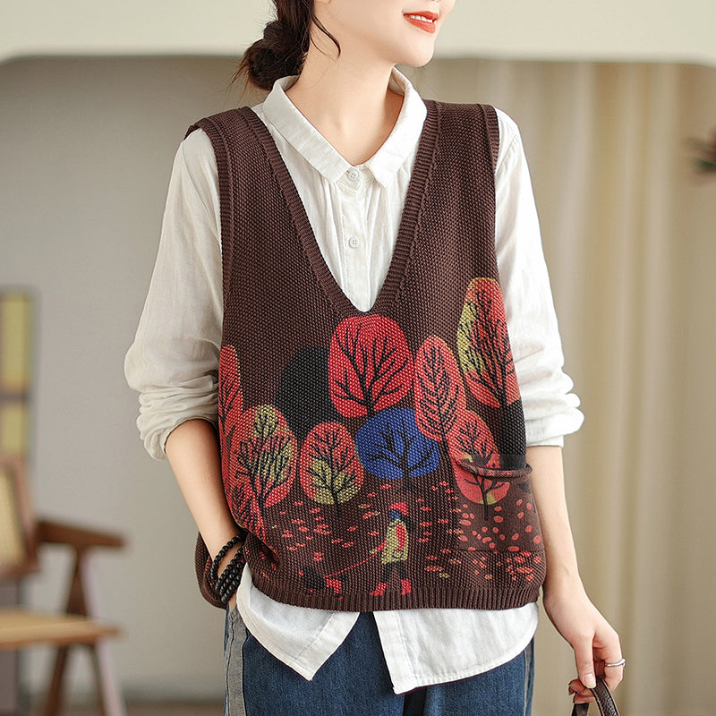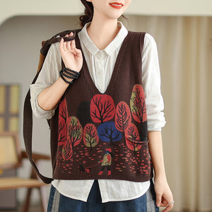 Áo len gile sát nách in hình rừng cây - A238