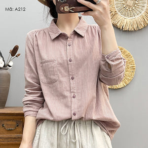 Áo sơ mi dài tay cổ đức kẻ sọc một túi vuông - A212
