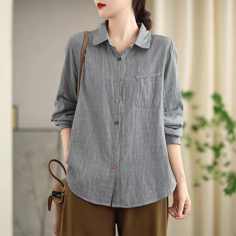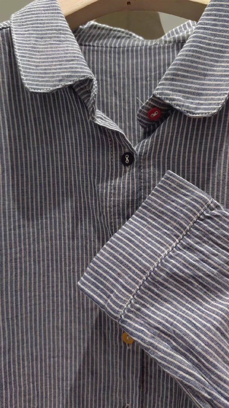 Áo sơ mi dài tay cổ đức kẻ sọc túi miệng chéo - A197