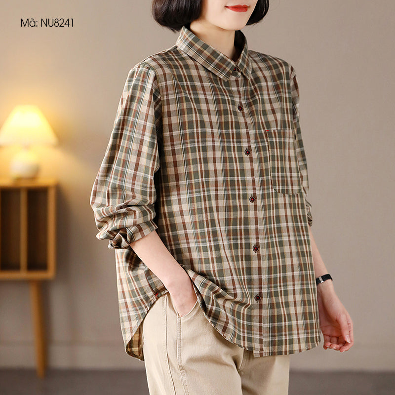 Áo sơ mi dài tay cổ đức kẻ sọc vạt mullet - NU8241
