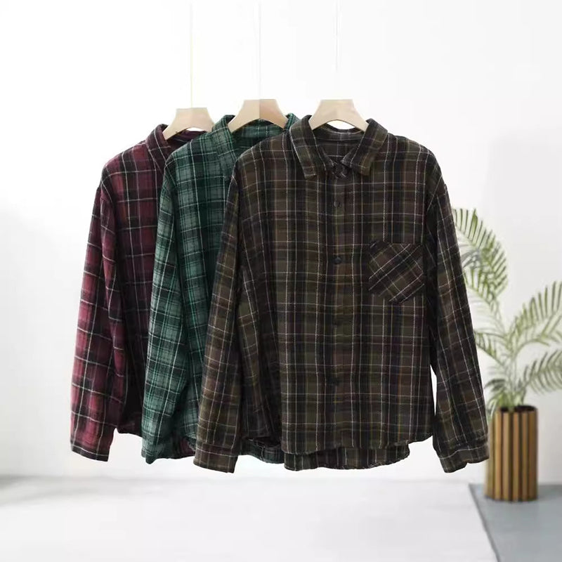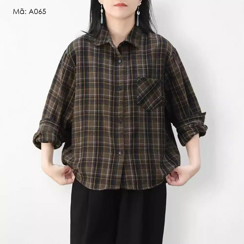 Áo sơ mi dài tay cổ đức một túi kẻ caro - A065