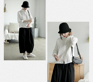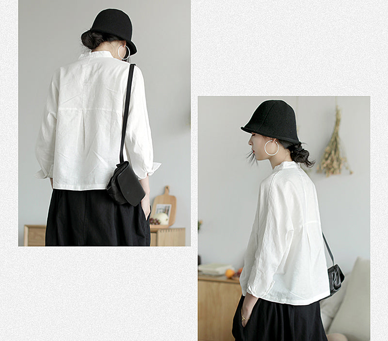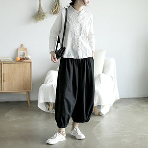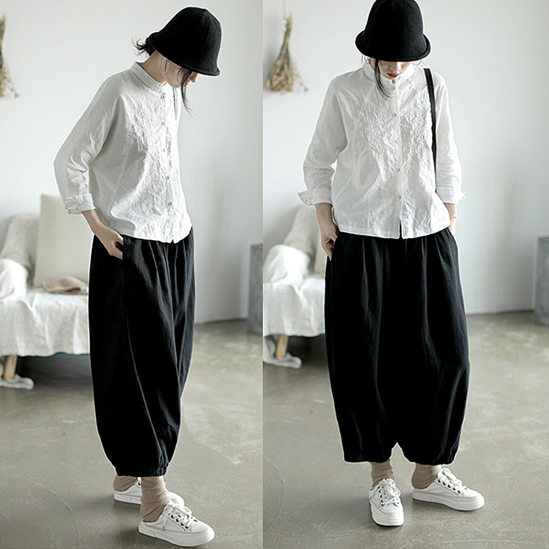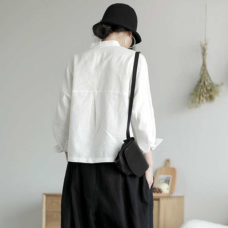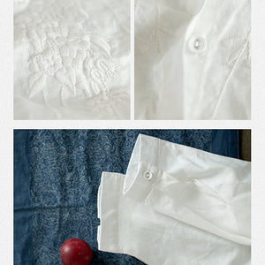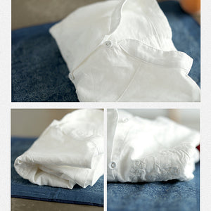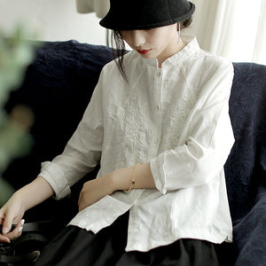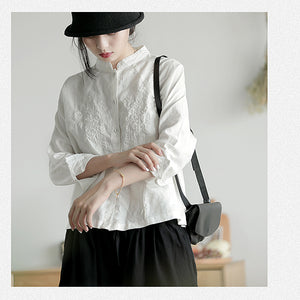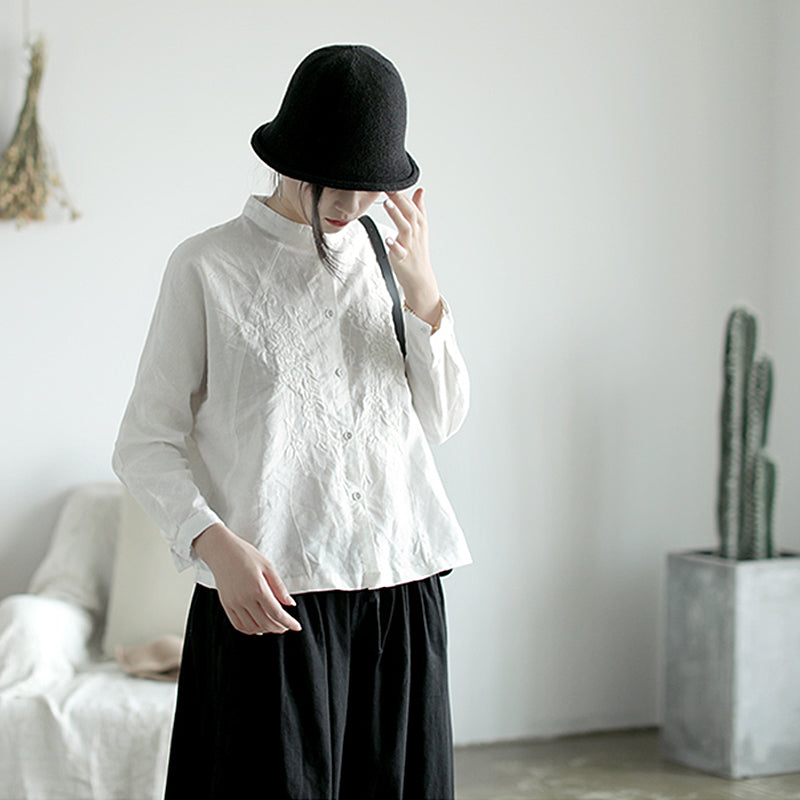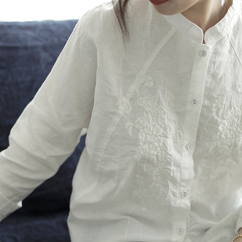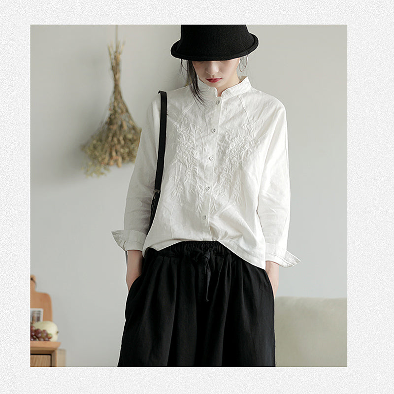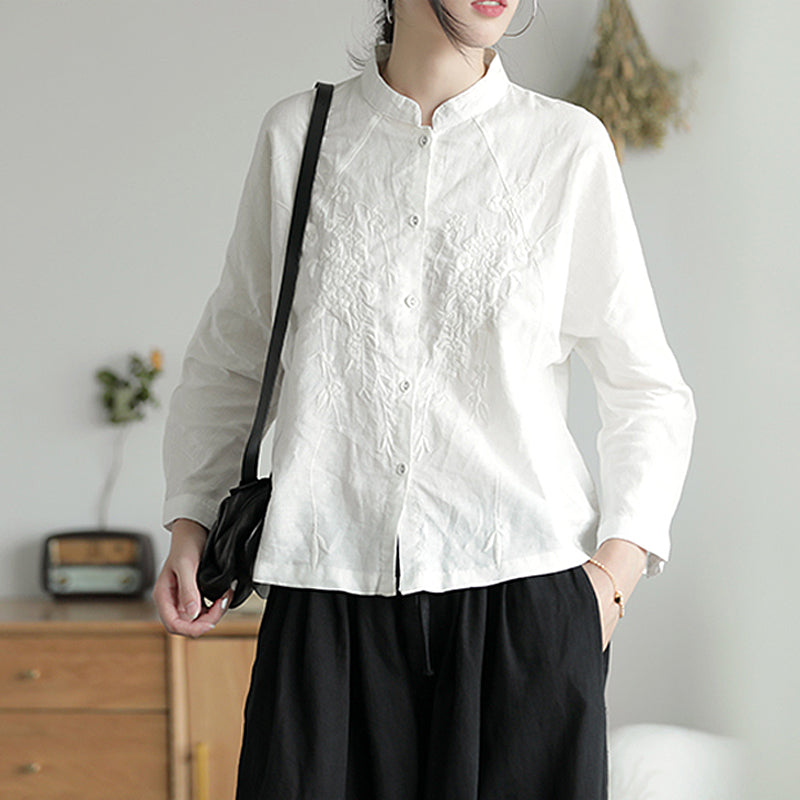 Áo sơ mi dài tay cổ tàu thêu hoa lá - NU3236
