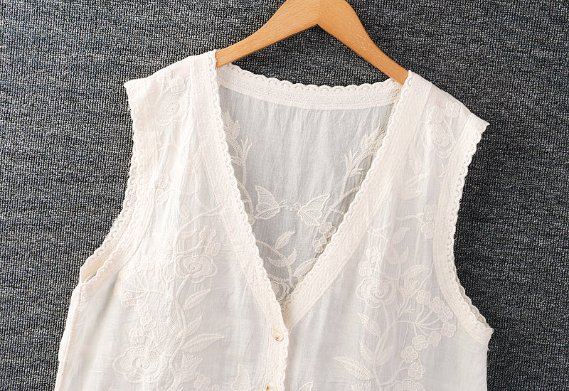Áo sơ mi gile linen sát nách cổ V - NU10292