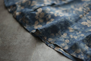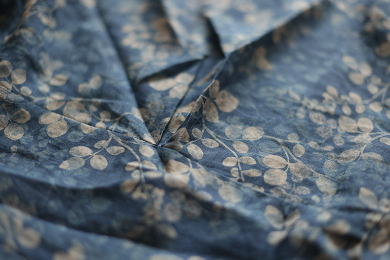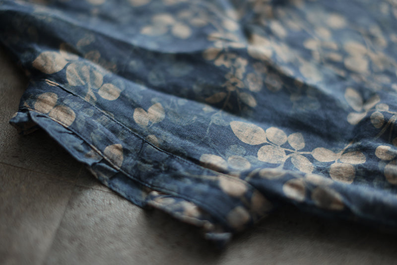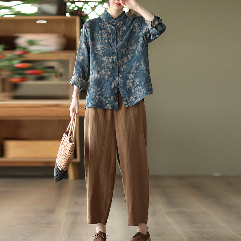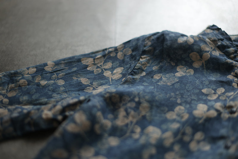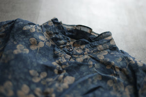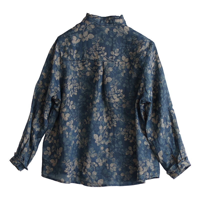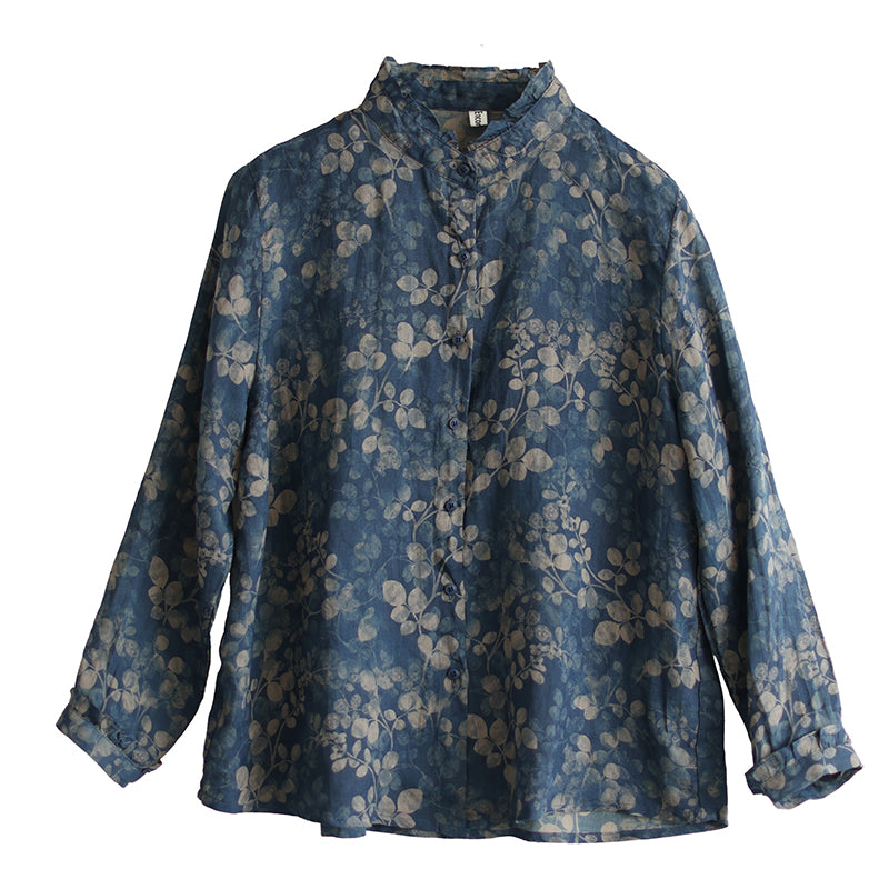 Áo sơ mi linen dài tay cổ đứng xếp ly in những chiếc lá - NU8290