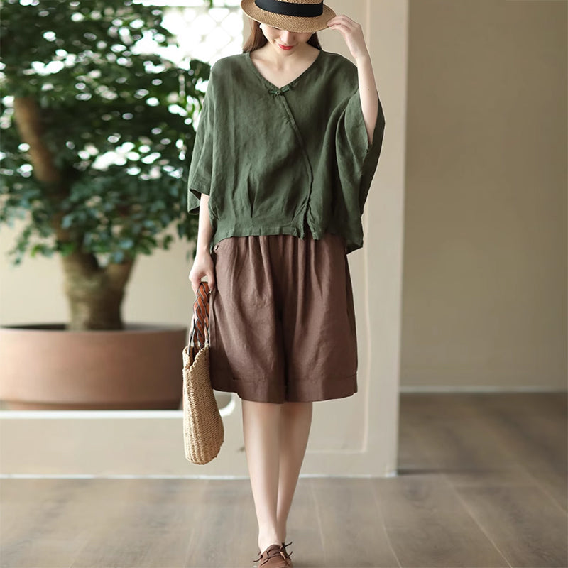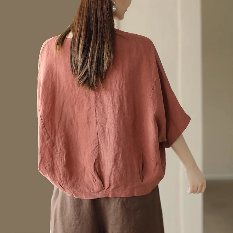 Áo sơ mi linen ngắn tay cánh dơi một khuy vải - NU8935