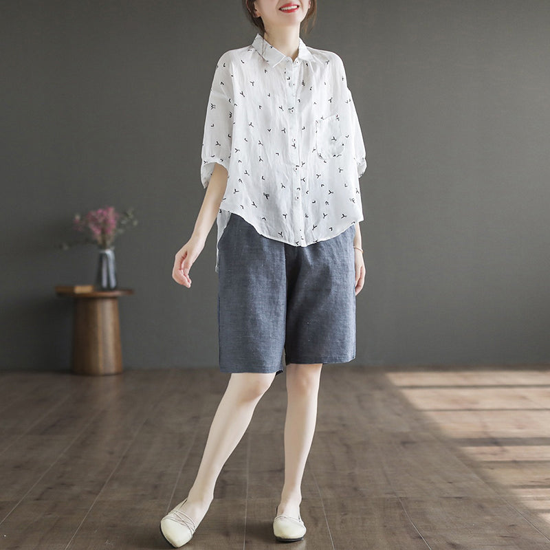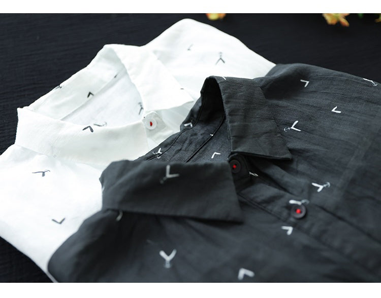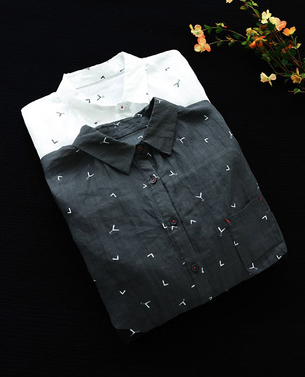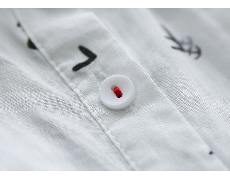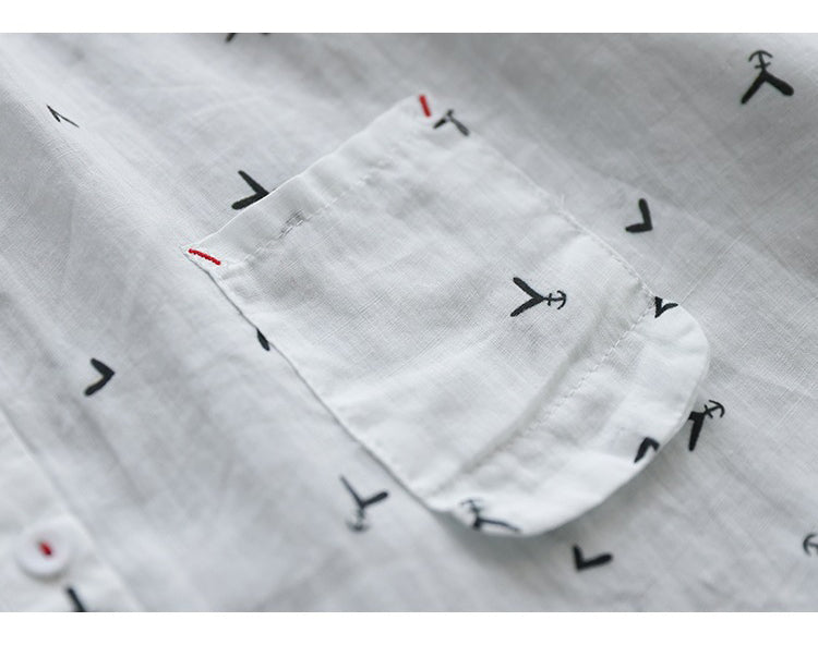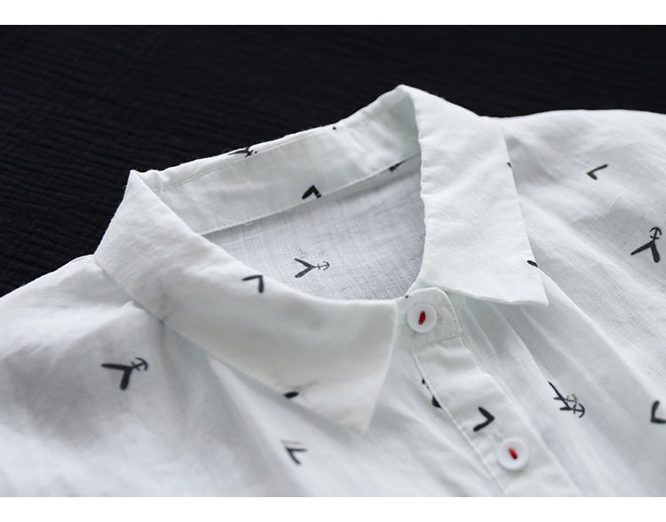 Áo sơ mi linen ngắn tay cổ đức in mỏ neo - NU7424