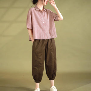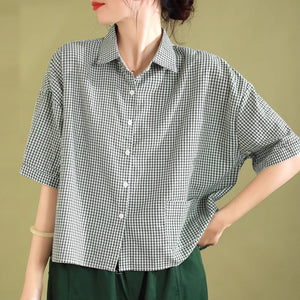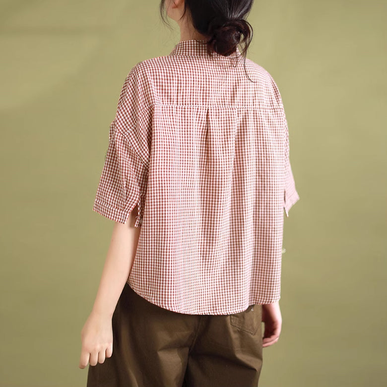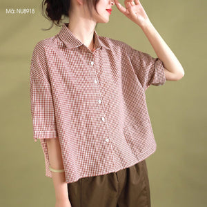Áo sơ mi ngắn tay cổ đức kẻ caro một túi vuông - NU8917