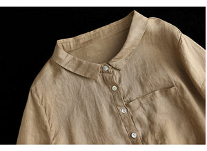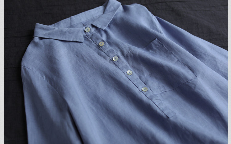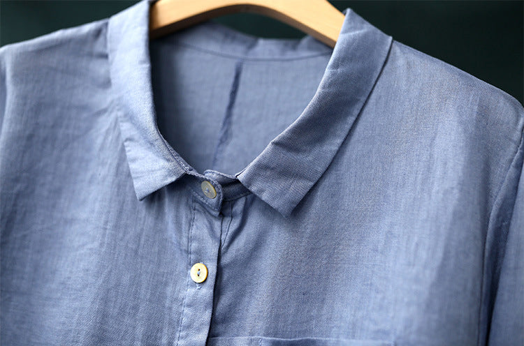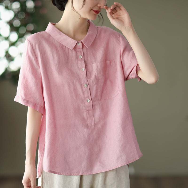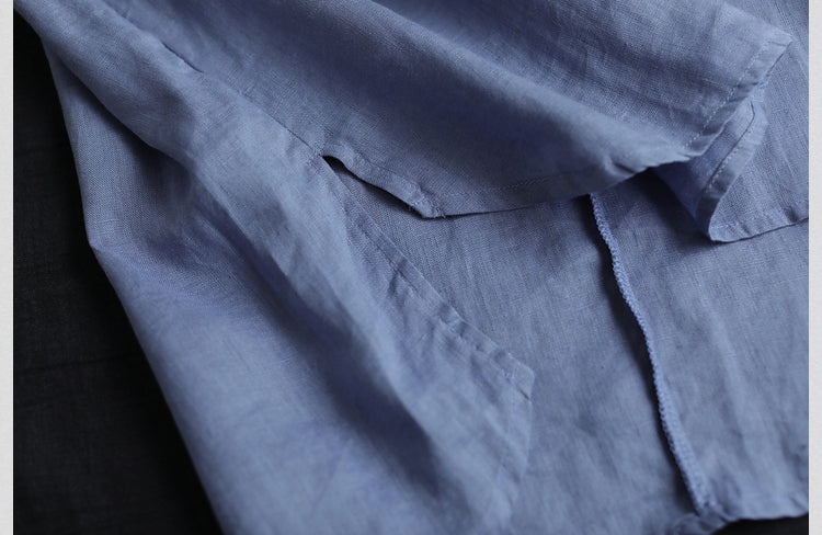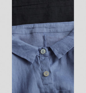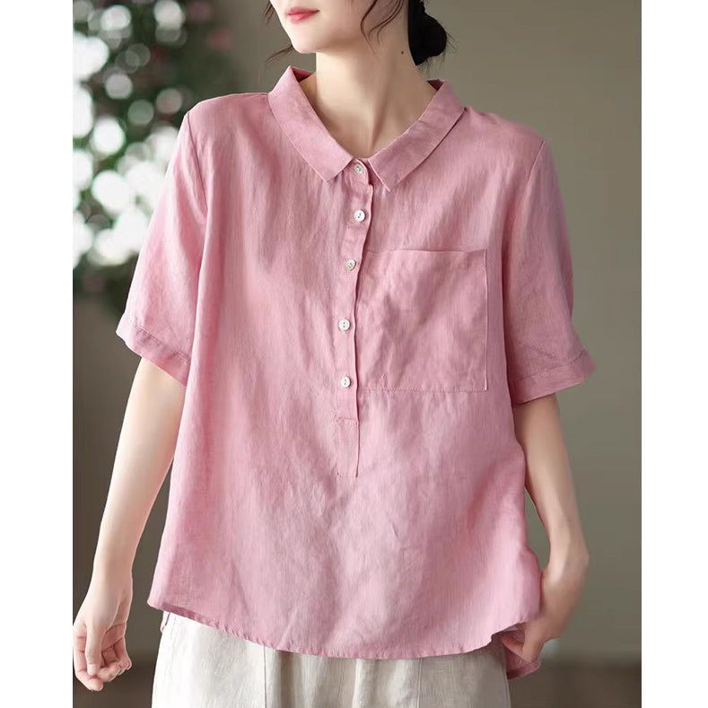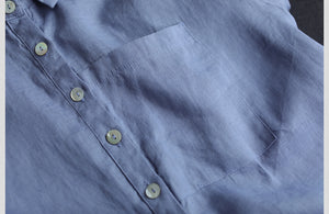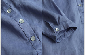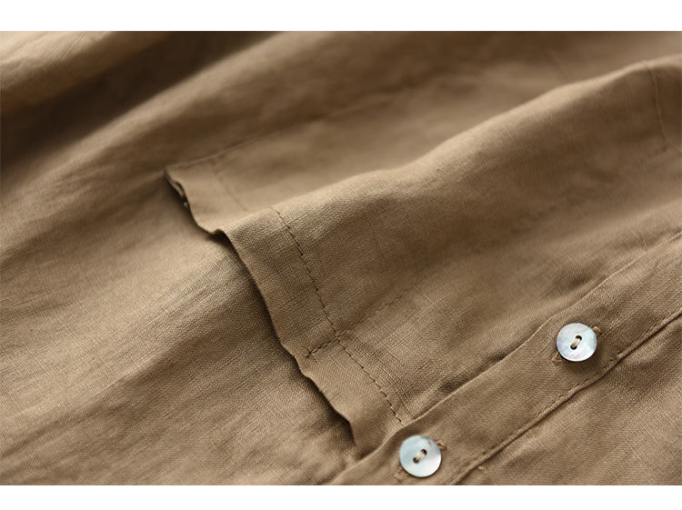 Áo sơ mi linen ngắn tay cổ đức khuy cài sát túi - NU5604