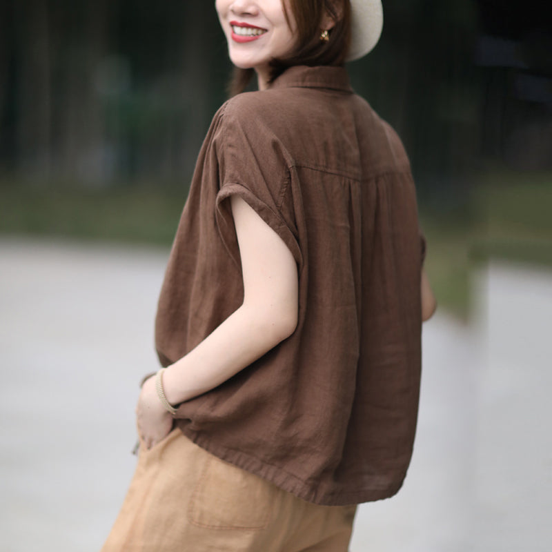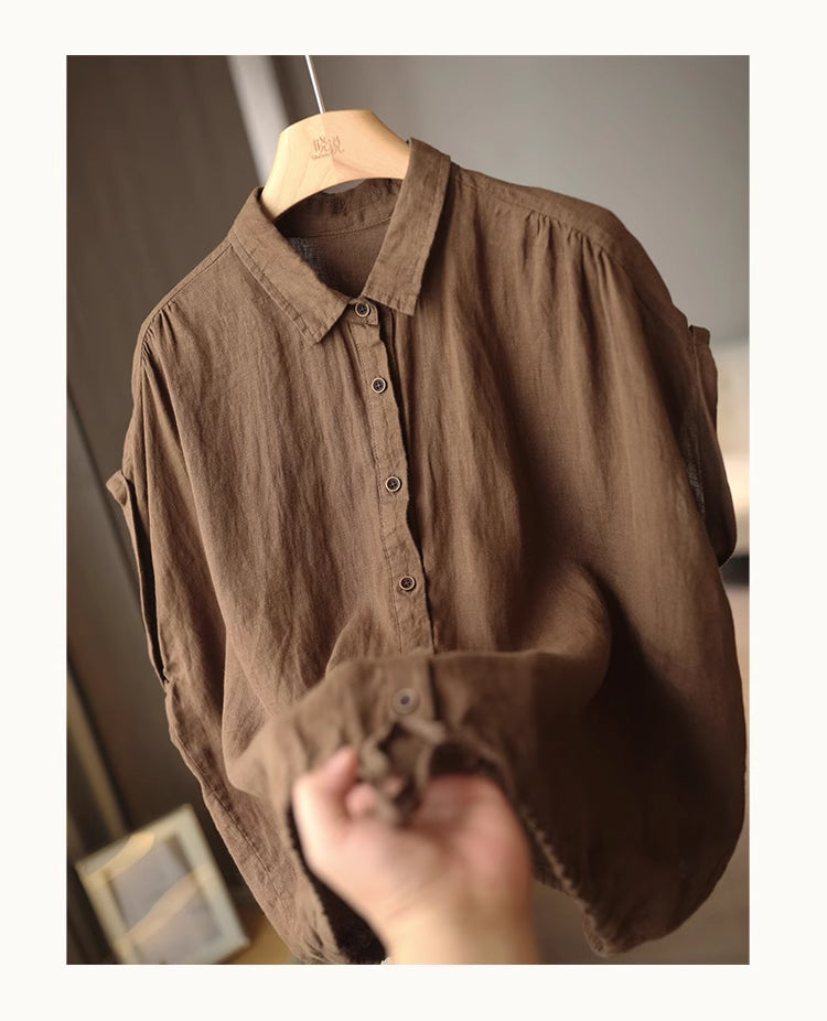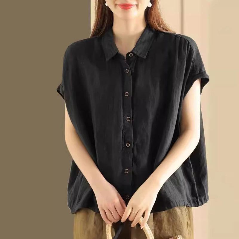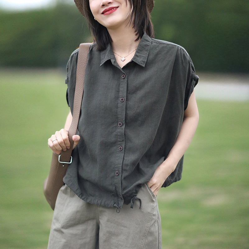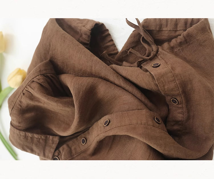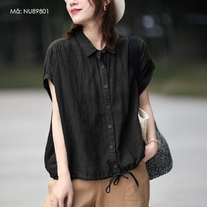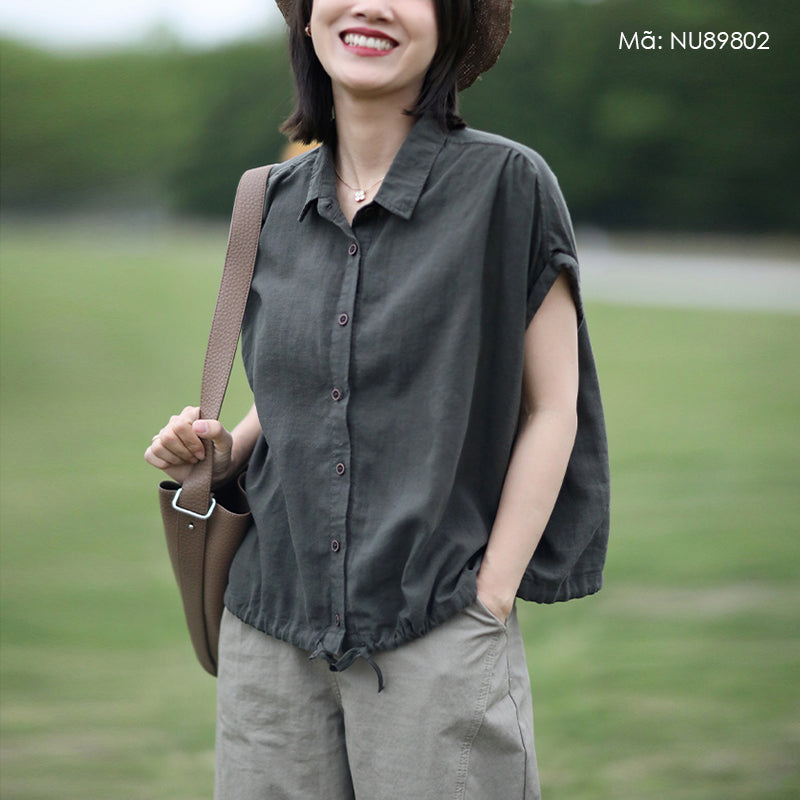 Áo sơ mi linen sát nách cổ đức đơn sắc vạt dây rút - NU8980