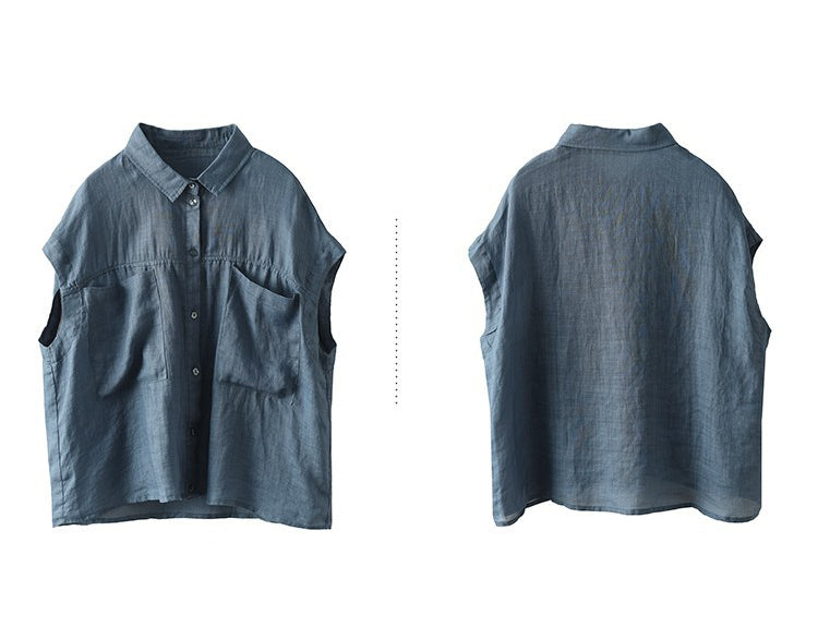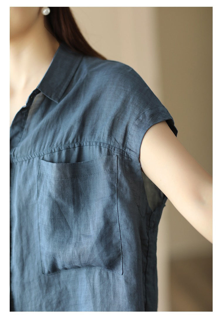 Áo sơ mi linen sát nách cổ đức hai túi vuông lớn - NU9799
