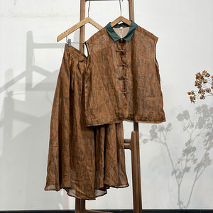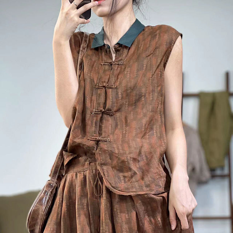 Áo sơ mi linen sát nách cổ đức khuy khuy tàu - NU7548